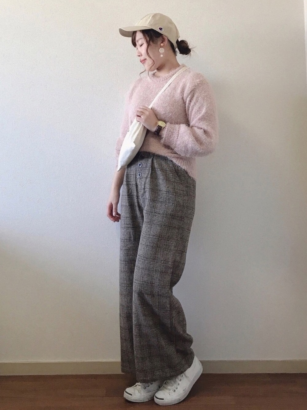 こながたのその他パンツ「・グレンチェックワイドパンツ」を使ったコーディネート