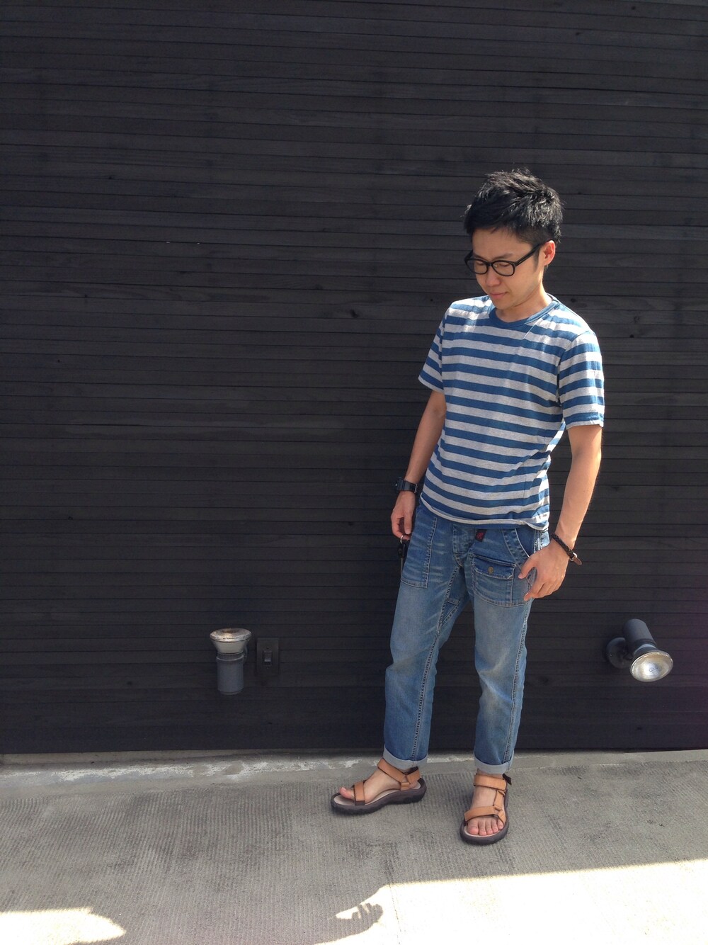 トップス:ブランド不明 サンダル:Teva メガネ:niko and...