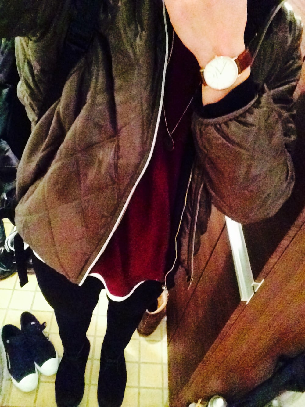 インカメでいつも画像が荒めになりがち。 このカーキのアウター実は全然気に入ってない。笑