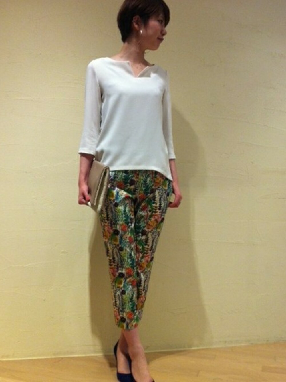リバティファブリックの生地を使用したパンツはシンプルなブラウスにピッタリな柄パンツ!