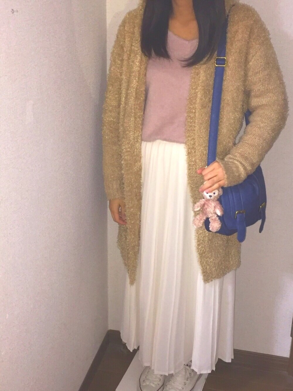 ranのカーディガン/ボレロ「フェザーフードロングカーディガン」を使ったコーディネート