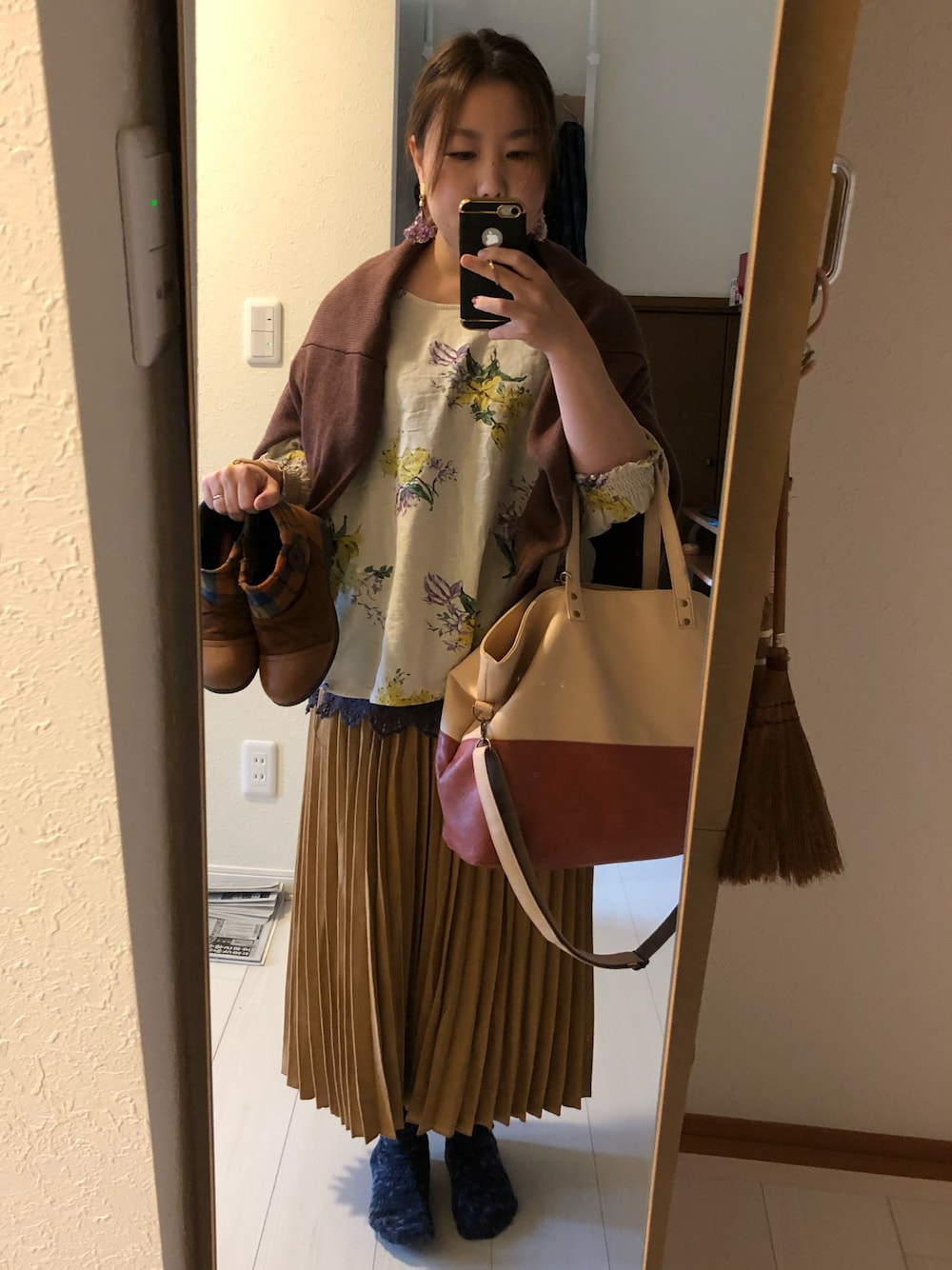 朝晩は寒いですが、今日の札幌は晴れて暖かい予定みたいなので、体温調節できるようにブラウスにカーデにしました。 and it_のスエードタッチなロングスカートは最近購入しましたが、質感、丈感がすごく気に入りまして、今季たくさん着たいです💕 昨日珍しく香水をつけ忘れちゃって、自分のにおいが気になる一日でした💦 今日はサムライウーマンドルチェバニラです💕いてきます‼️