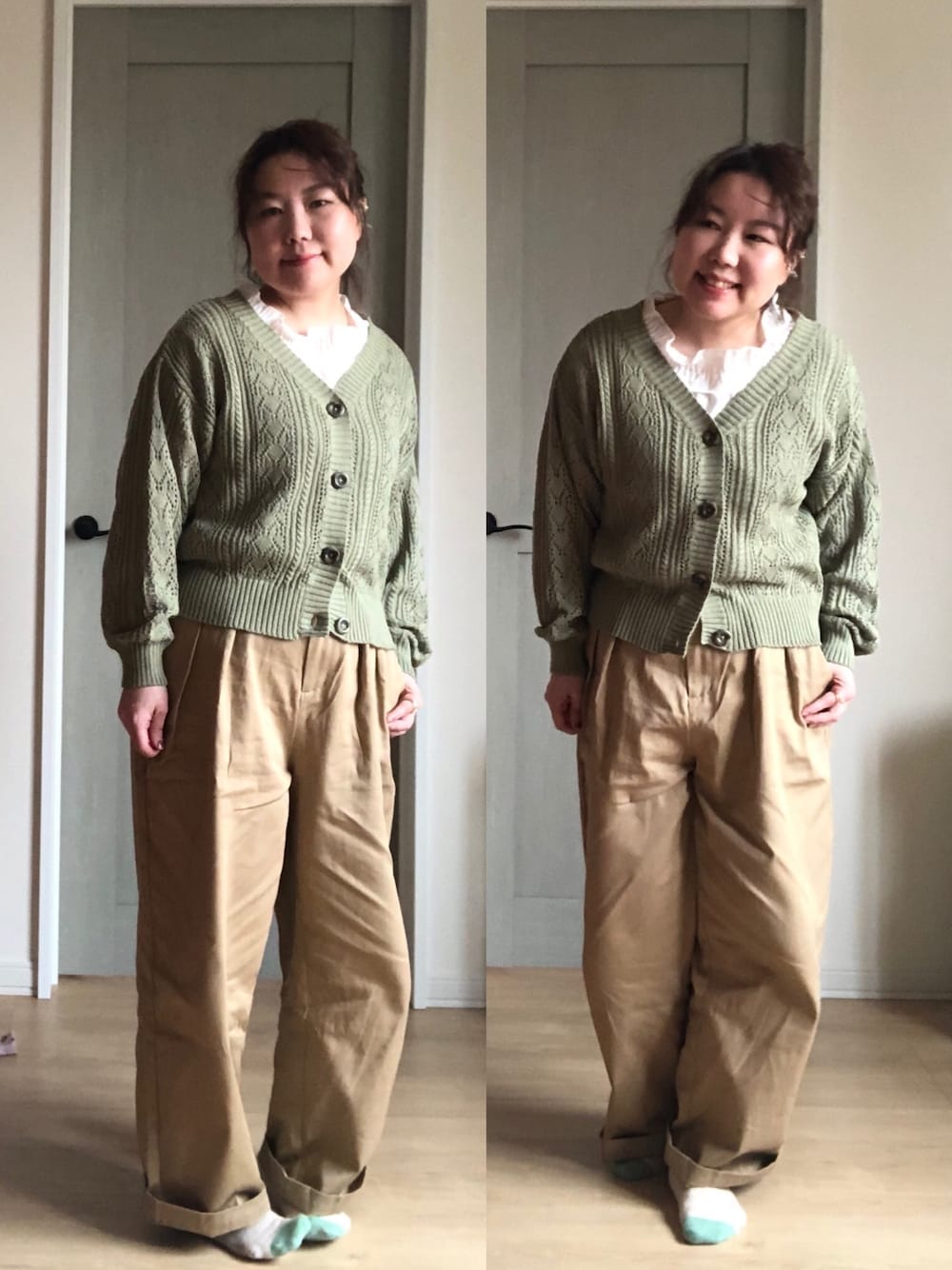 今日はand it_のエミュラルシリーズのパンツはきました! ハリのあるコットンでめちゃかわいいです💕 編みカーディガンも、and it_。 カラーはピスタチオ!