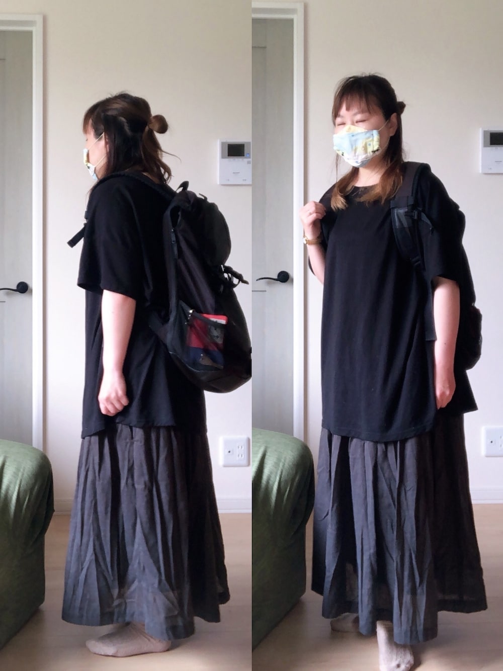 今日はムシムシしています💦 結婚記念日のため買い出しにいきます‼️ リュックを背負ってー