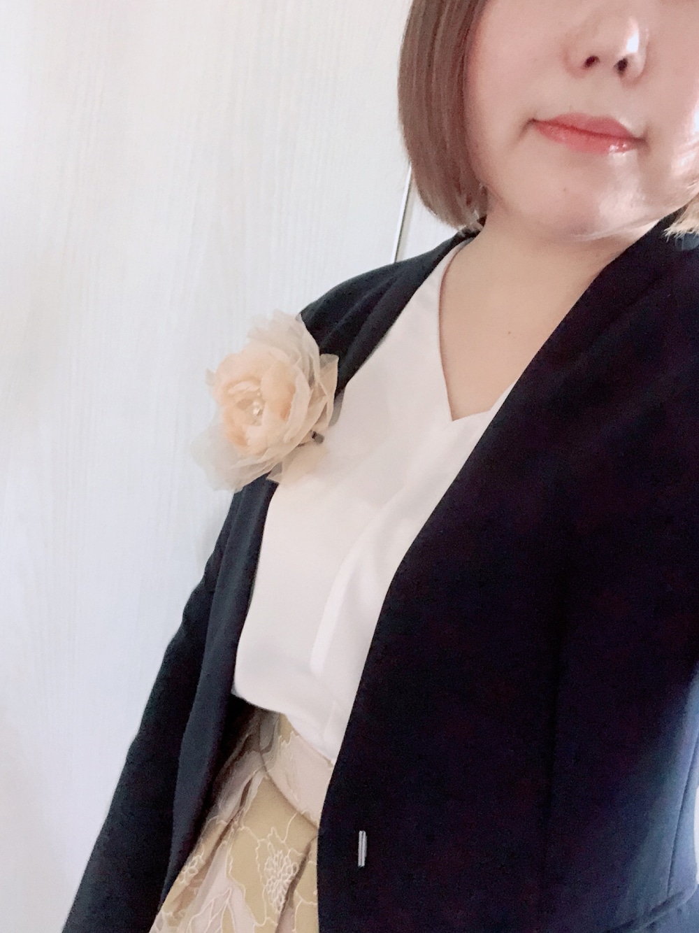 入学式でした!いつもの仕事着にコサージュつけた感じです😊