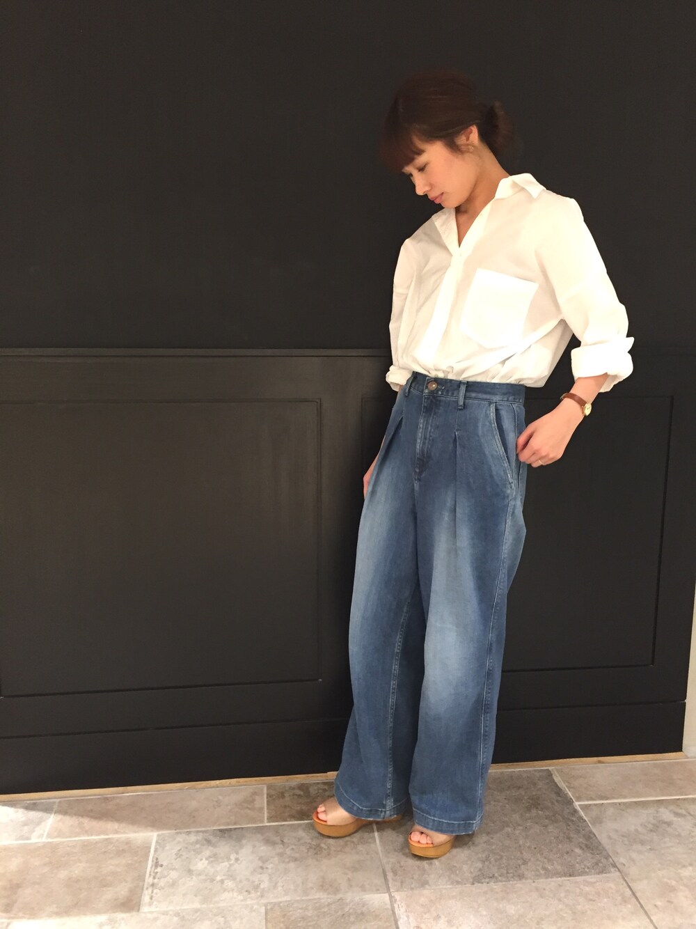 お久しぶりです 今日は白シャツとデニムで 爽やかに…? ビックシルエットのシャツは かなり使える♡ さっ、家に帰りまーす(^。^)