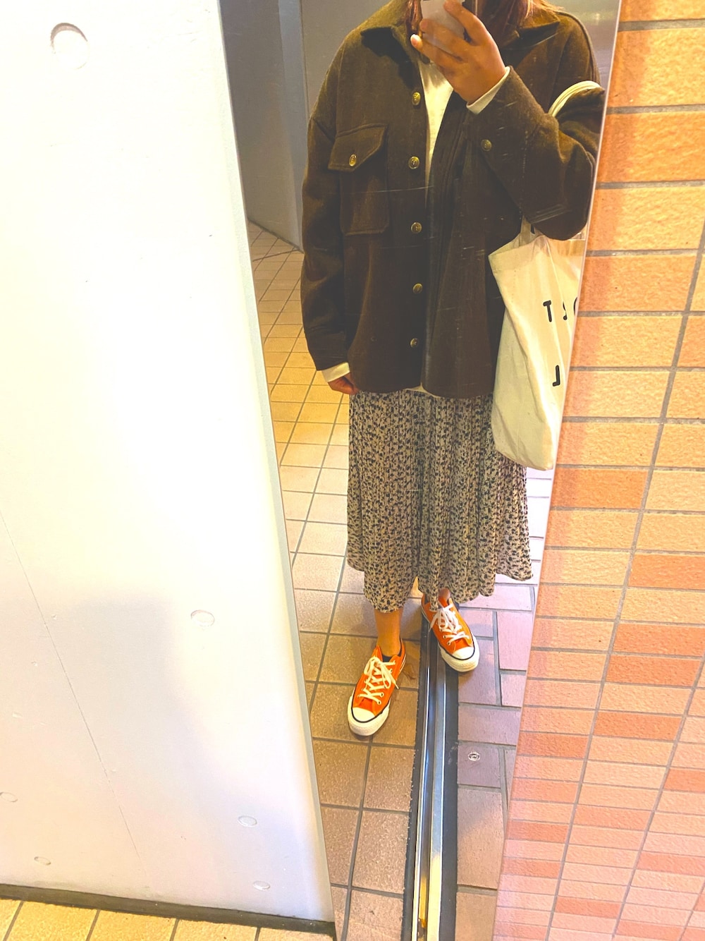 akane♡のスニーカー「CONVERSE コンバース キャンバス オールスター J ハイ / CANVAS ALL STAR J OX (ORANGE) 31301650」を使ったコーディネート