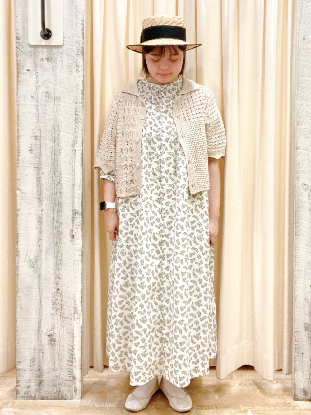ナチュラルなワンピースに薄手のカーディガンを合わせました🌿