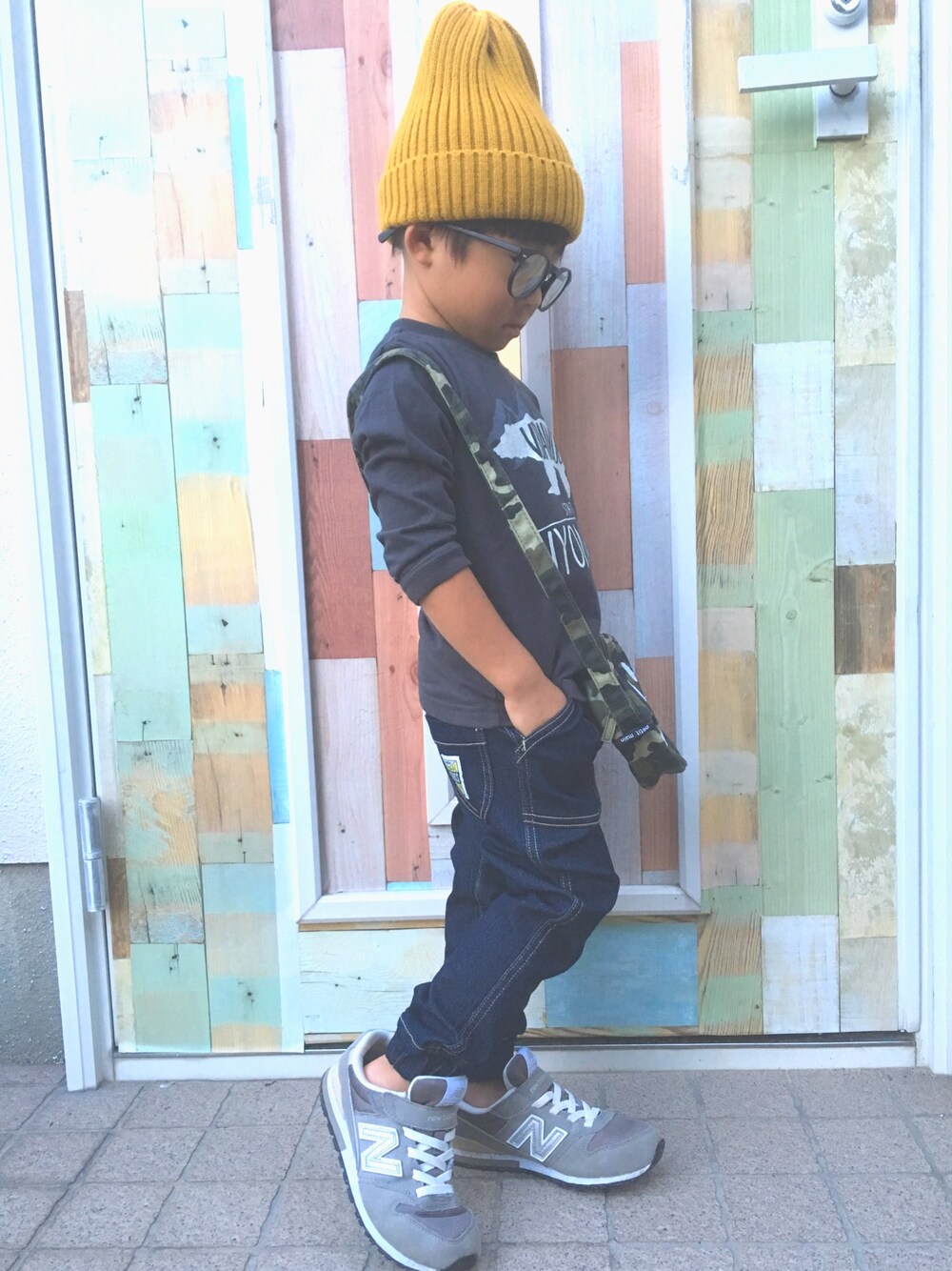 シンプルにデニムパンツ合わせ♪ またまた可愛いクマ柄ロンT を発見٩(ˊᗜˋ*)و さし色に黄色ニット帽を合わせました〜 本人、帽子は大好きみたいで「今日はこれ〜」って合わせてくれました。 いいね♡ありがとうございます!!