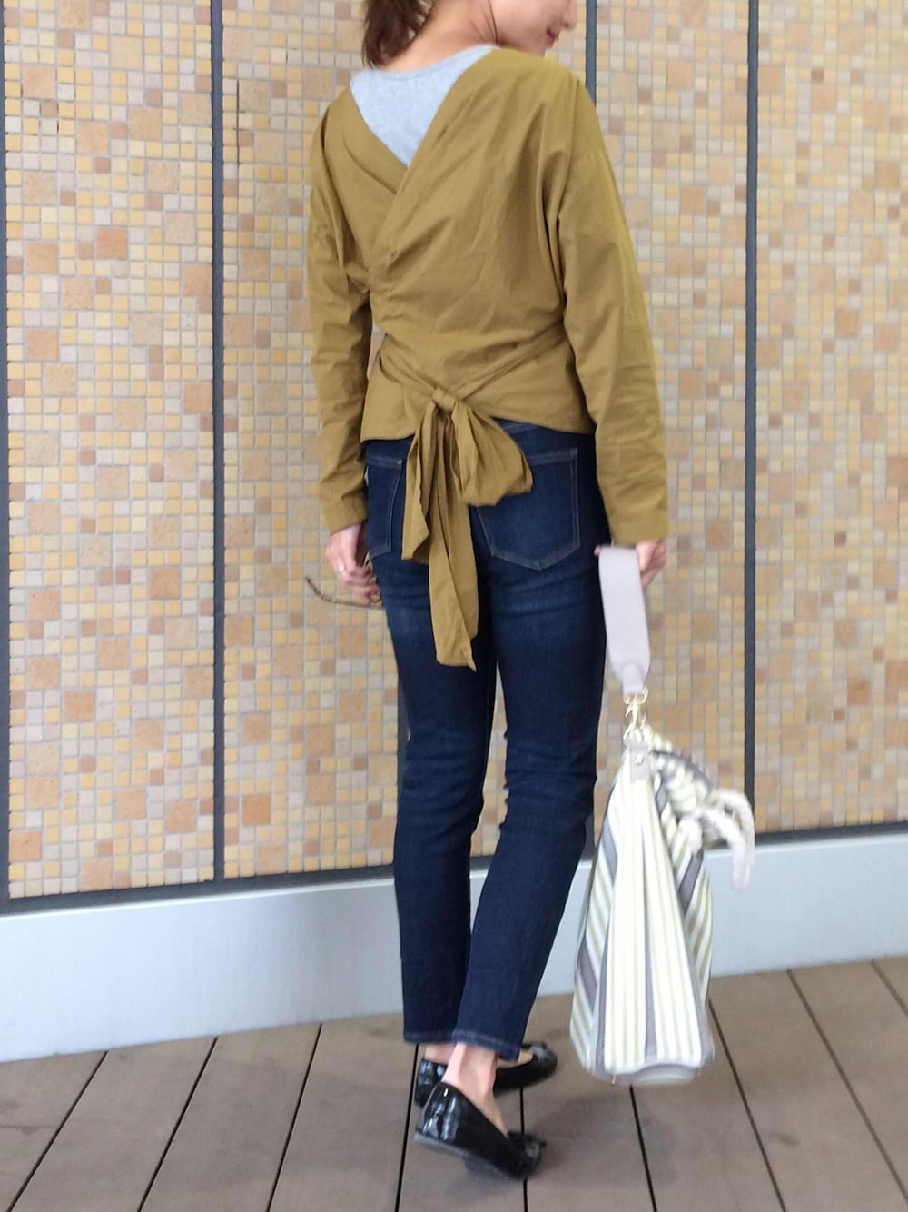あかいろのシャツ/ブラウス「エクストラファインコットン2WAYカシュクールブラウス(長袖)」を使ったコーディネート