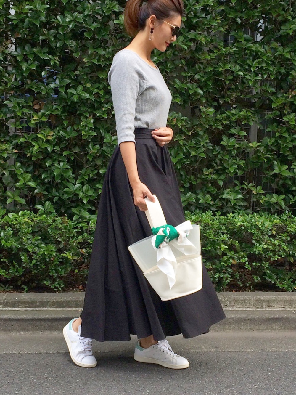 スカーフとスタンスミスのグリーンを差し色に🍀