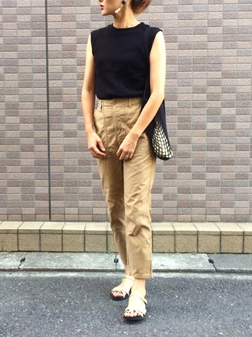 上下GUの超プチプラ😂 👚ワッフルスリーブレスT 👖ベイカーテーパードパンツ