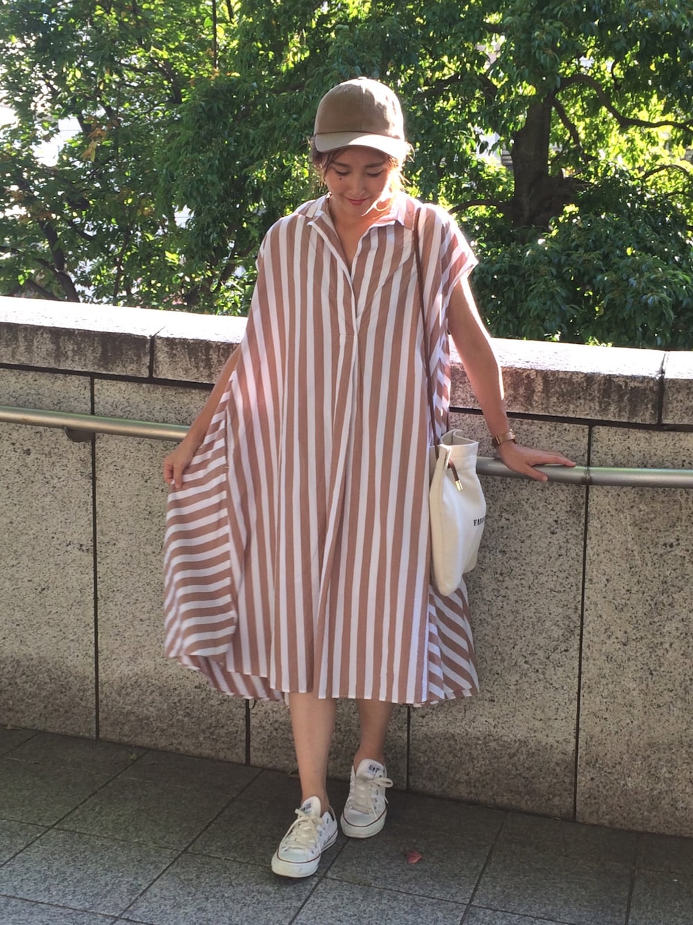 ワンピース×キャップのベージュコーデ👗🧢