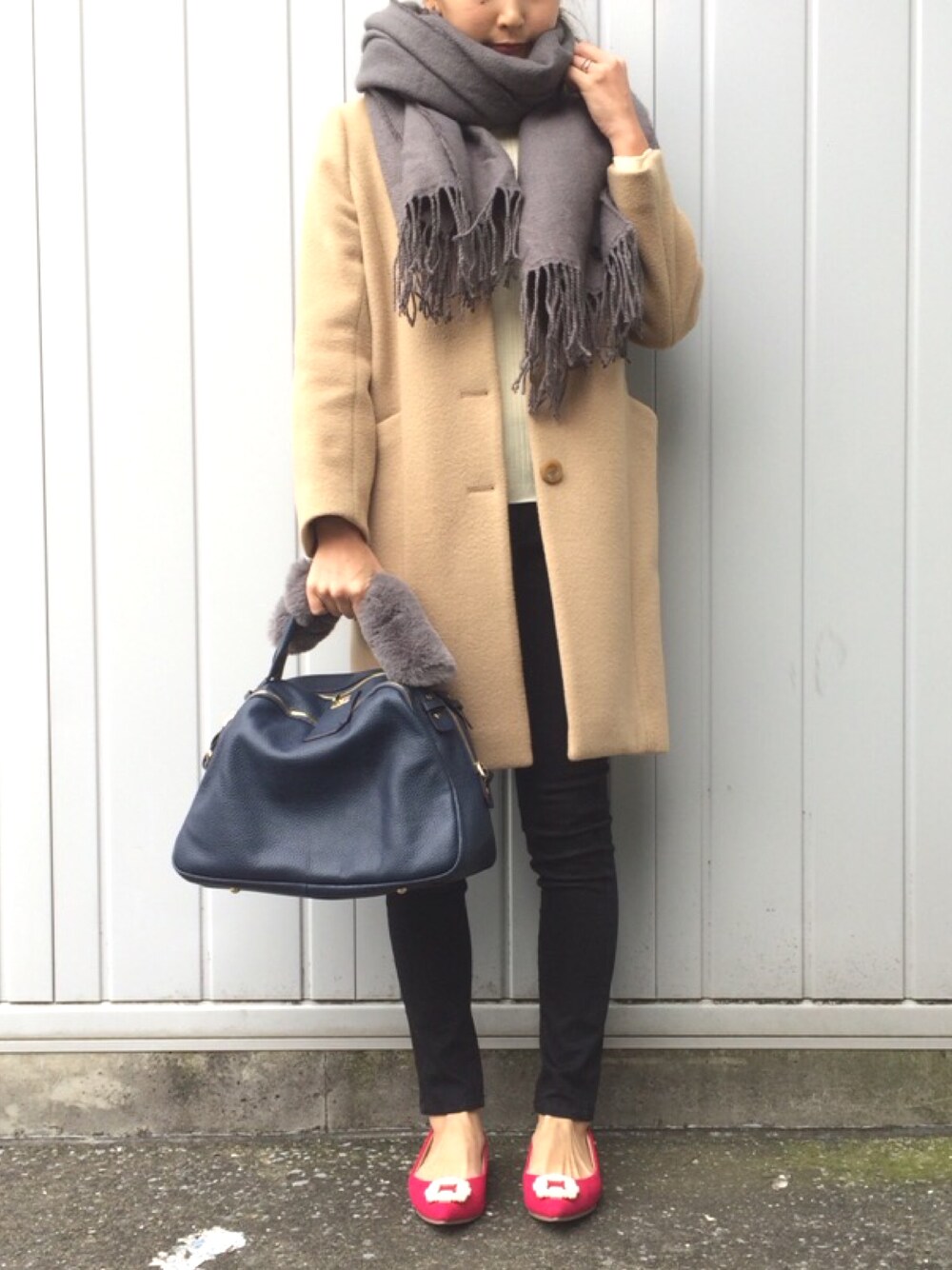 あかいろのチェスターコート「ROSSO ウールコクーンチェスターコート」を使ったコーディネート