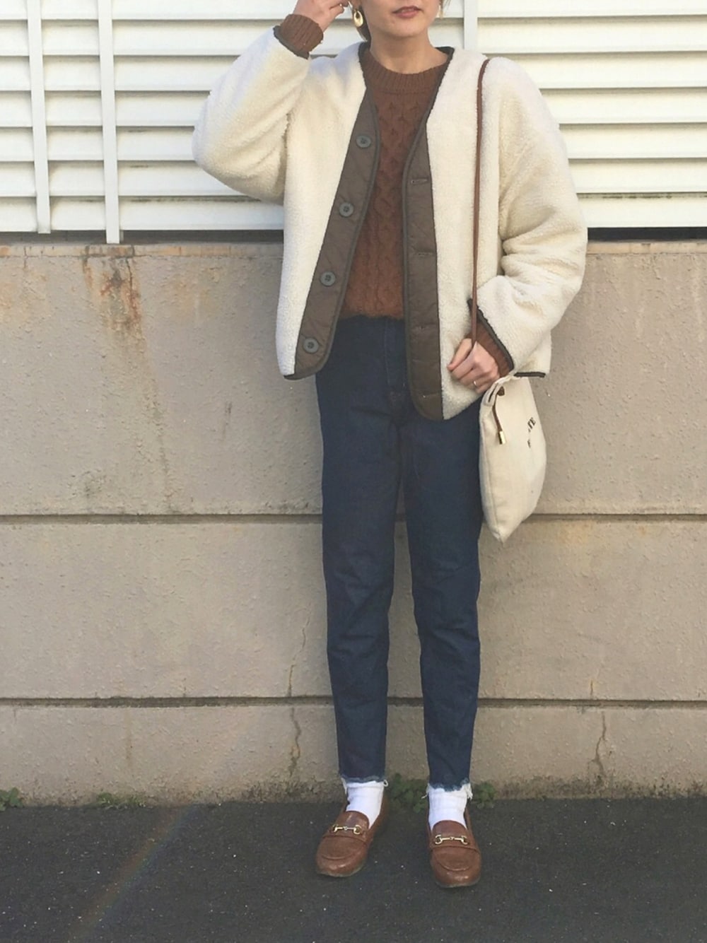 あかいろのブルゾン「ボアリバーシブルキルトジャケット」を使ったコーディネート