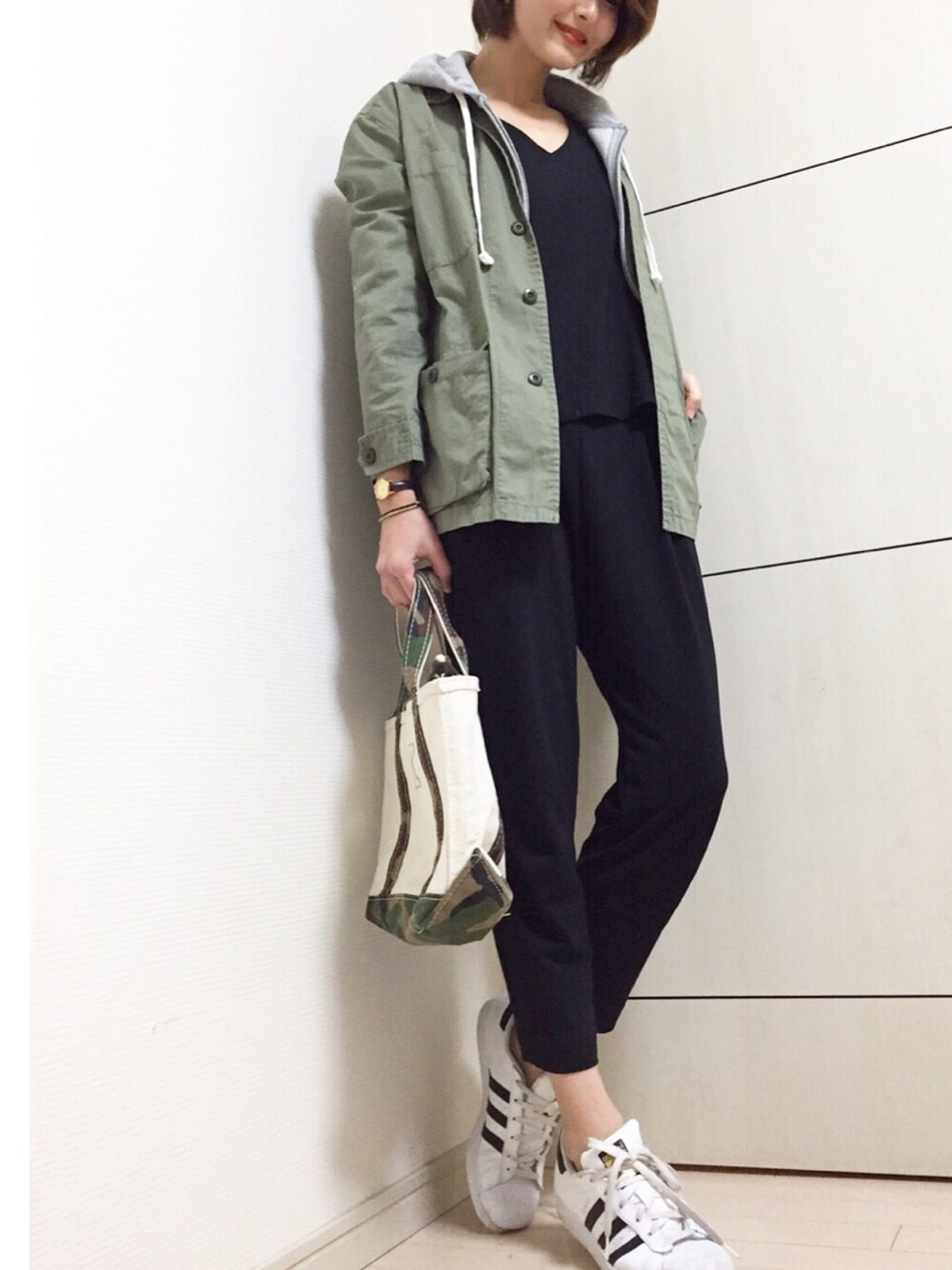 セットアップをカジュアルに! 別々でも着られるし、これだけでもキマるしセットアップって本当に便利! 無印良品のパーカーも噂通り着心地よし♡