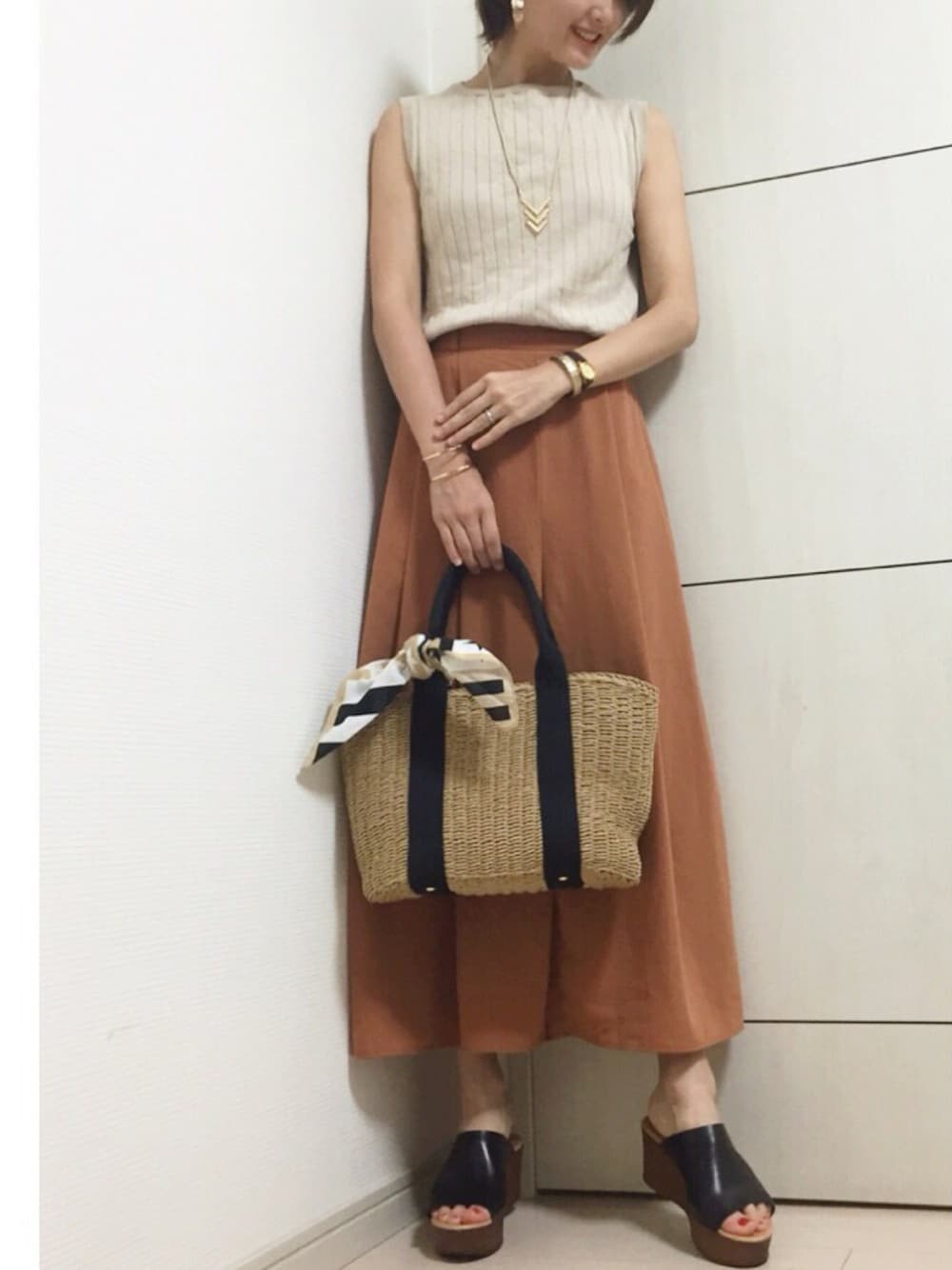 なんだかコーデを撮る気になれず、久しぶりのアップ! ヘビロテしすぎなUNIQLOのUVカットワイドリブノースリーブセーターと GUのイージースカンツでグラデーションコーデ。