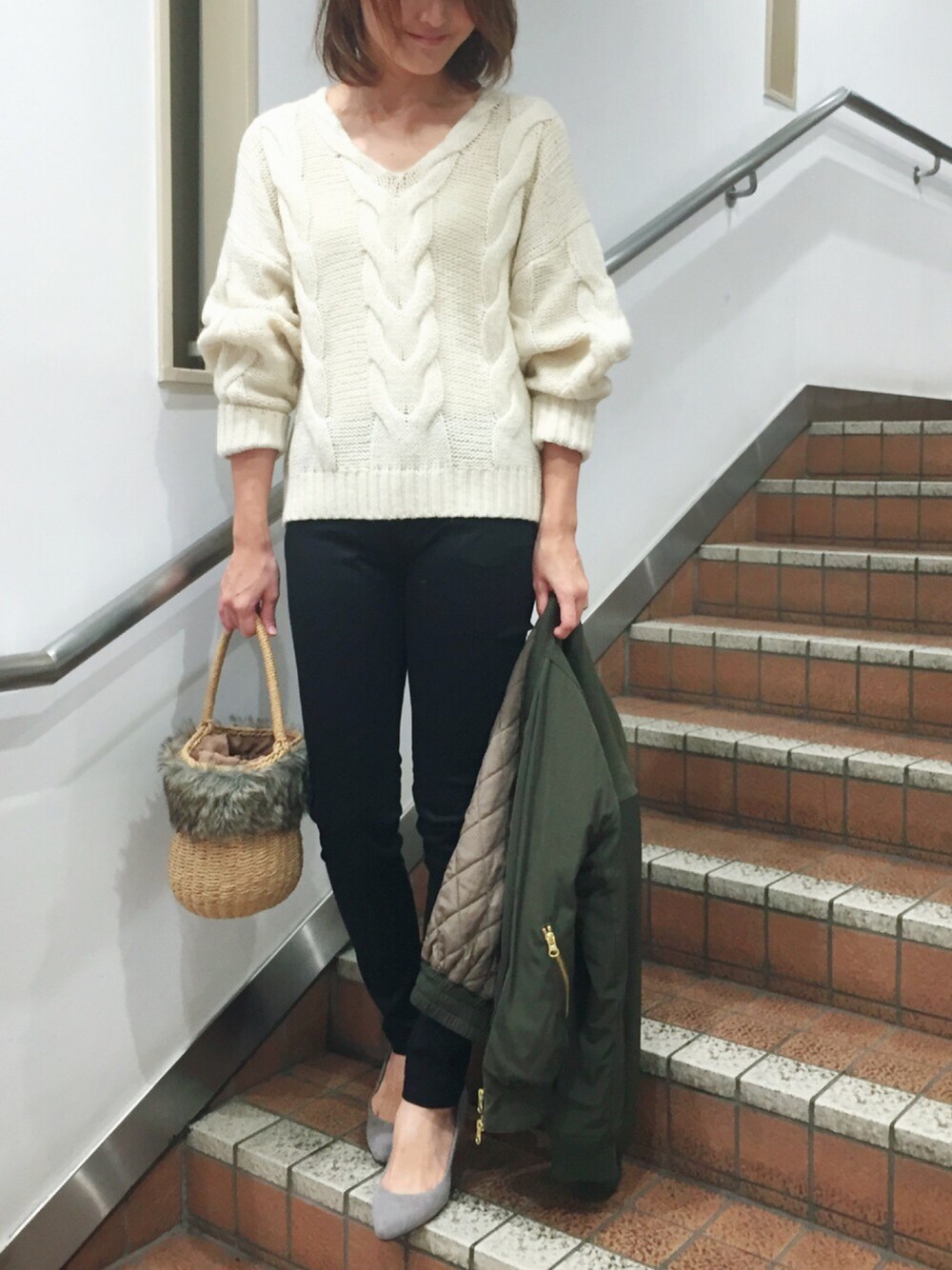 夕方に撮ったので画質粗くてすみません😭 今日は暖かくてニット1枚で大丈夫でした😊🎵 ニットは腕をたくし上げたときのボリューム感がめっちゃ可愛いです💕 そして、今さらながら黒スキニーデビューしました😁👍 脚のラインが丸わかりになるのが苦手でワイドパンツばかりだったけど、やっぱり細身のボトムの方が合うな〜と思うようになって。 このindexさんのパンツは程よくフィットし、ストレッチが効いているので脚がきれいに見えるしとっても楽です✨ もっと早くデビューしていたらよかったー❗️❗️