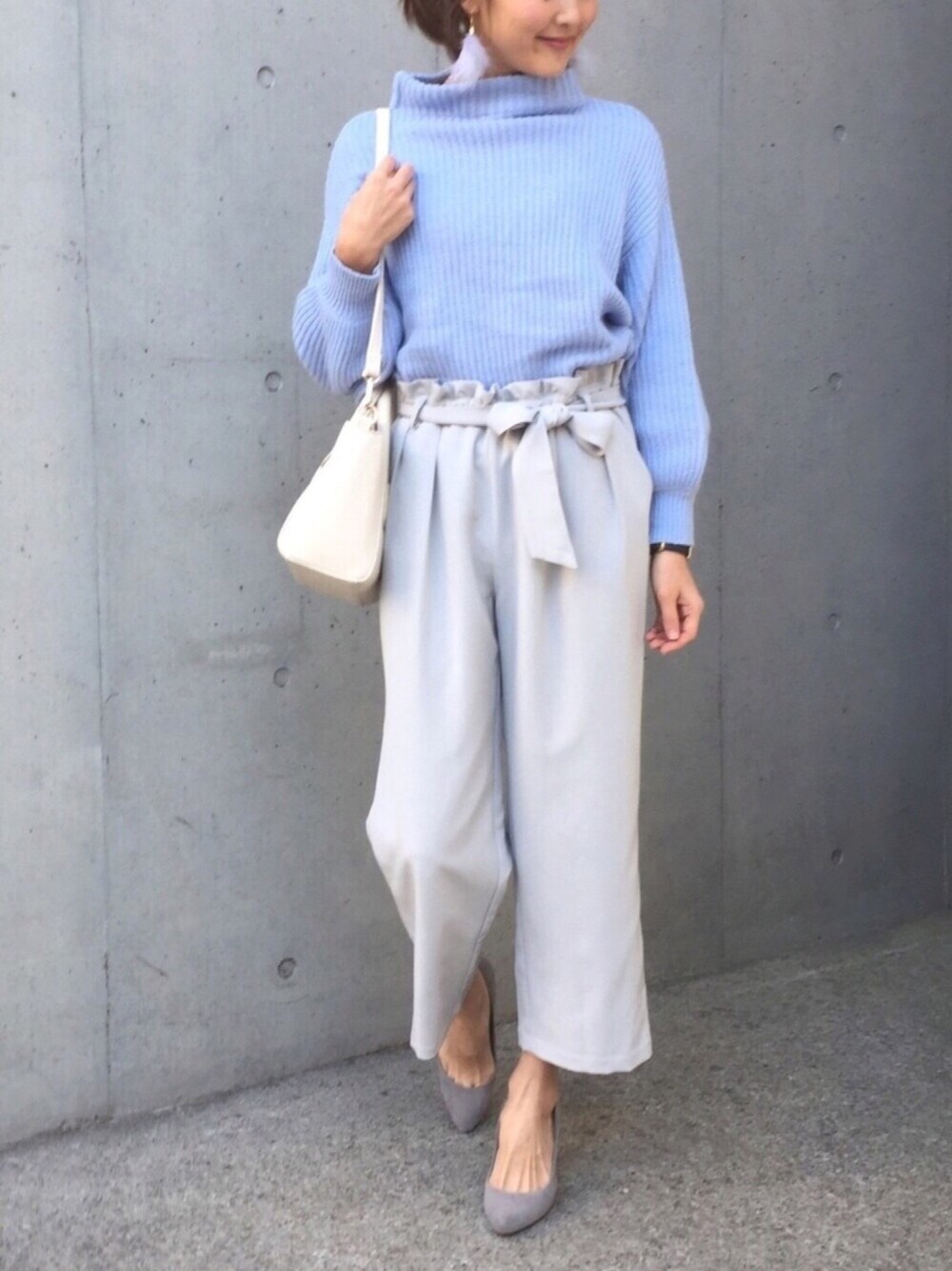 あかいろのニット/セーター「◆ボトルネックパフスリーブニットプルオーバー」を使ったコーディネート