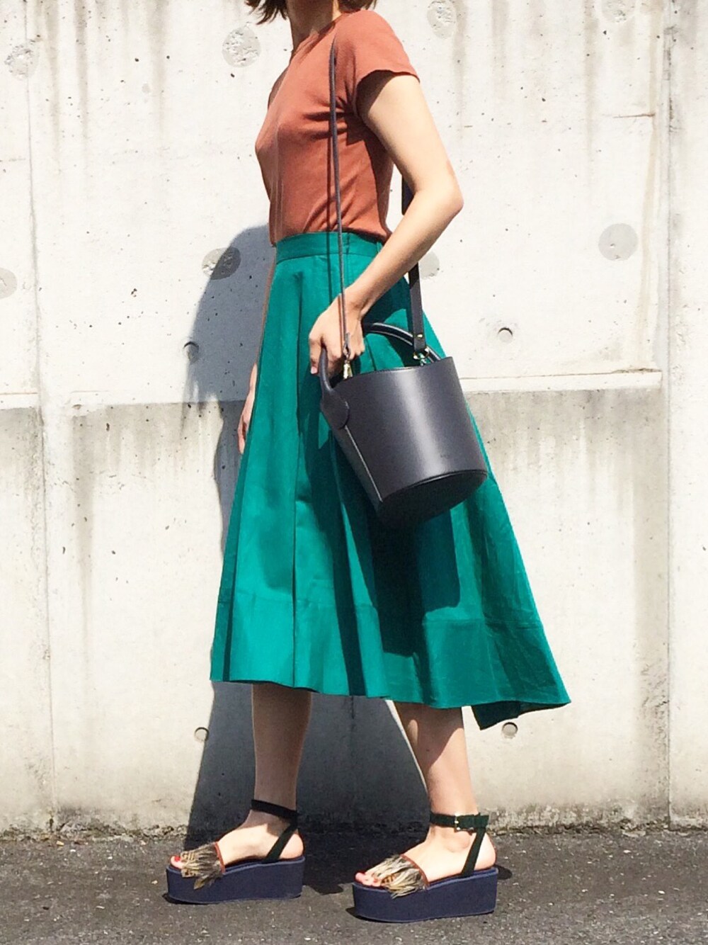 鮮やかなグリーンとフィッシュテールデザインが可愛すぎる😍💕 リブTは去年のUNIQLOです👚