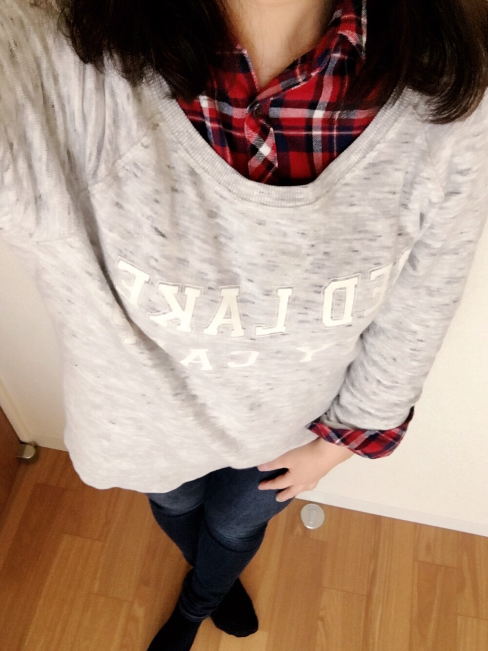 トレーナー×ネルシャツ×ジーンズ❁ おうちこーで❁