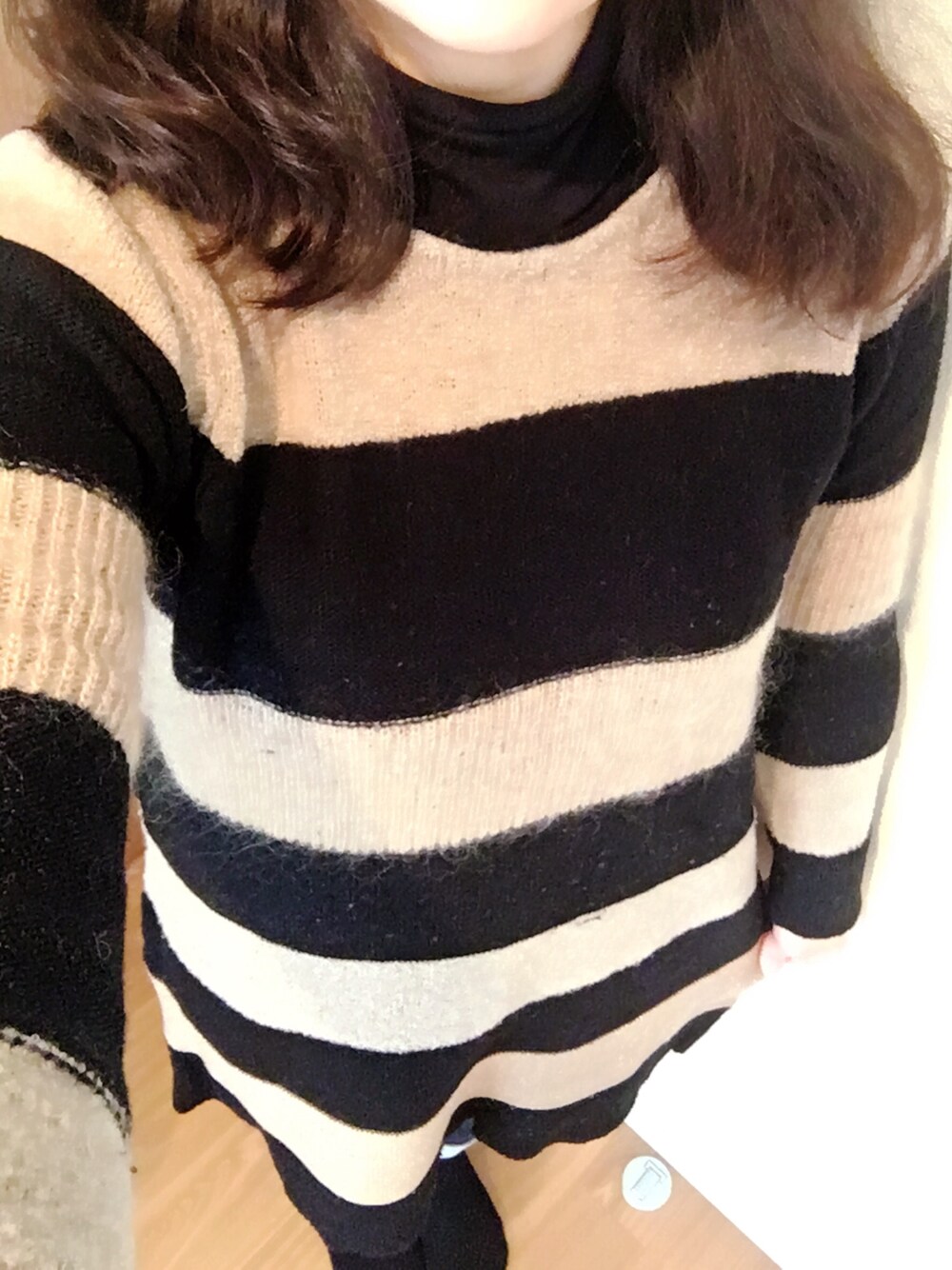 見てくださりありがとうございます☺︎︎ 今日も防寒重視ですが このボーダーニットはとても暖かく デザイン凝っていてボーダーごとに 糸と編み方が違っていてお気に入りです♪ 全身は暗くなってしまい 写真ではわかりにくいですが😥 みなさんモデルさんみたいな方ばかりですが どうやって写真撮っているのかな🤔