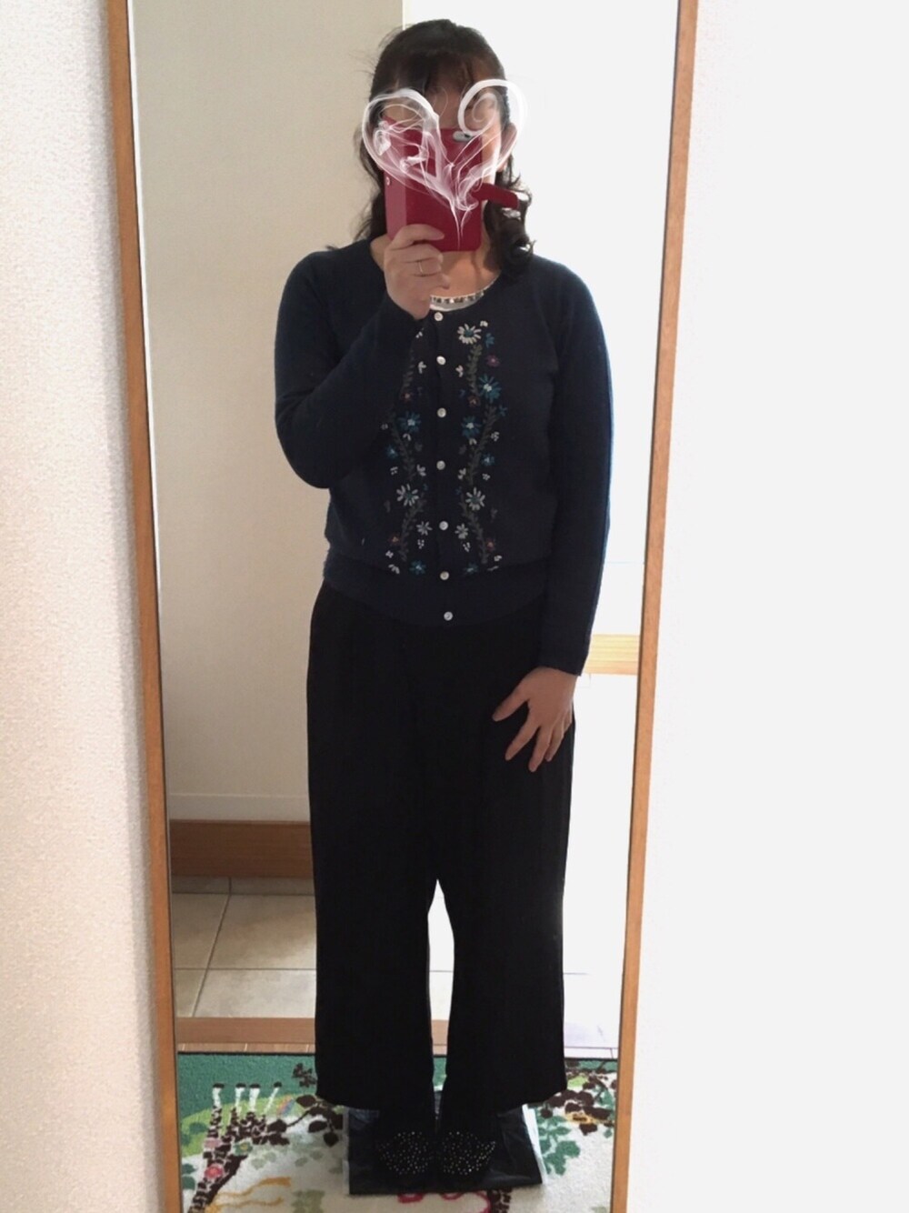 見てくださりありがとうございます☺︎︎ いつもですが画像が暗くて見ずらい…… カラートーンが暗いから尚更です(。•́•̀。)💦 夕方幼稚園の先生と面談があるので 落ち着いたコーデですᙏ̤̫ 花モチーフデザインのあるカーディガンに ビジュー付インナーを合わせました✩ アウターは明るめの色にしようと思います❁¨̮ 咳がひどくなりまた幼稚園をお休みの息子😓 でも熱はないし体も元気なので兄妹仲良く 遊んでると思った数分後には ギャーギャーと喧嘩……😩 早く元気になって幼稚園行ってほしいです! そして週末は買い物へ行けますように!!