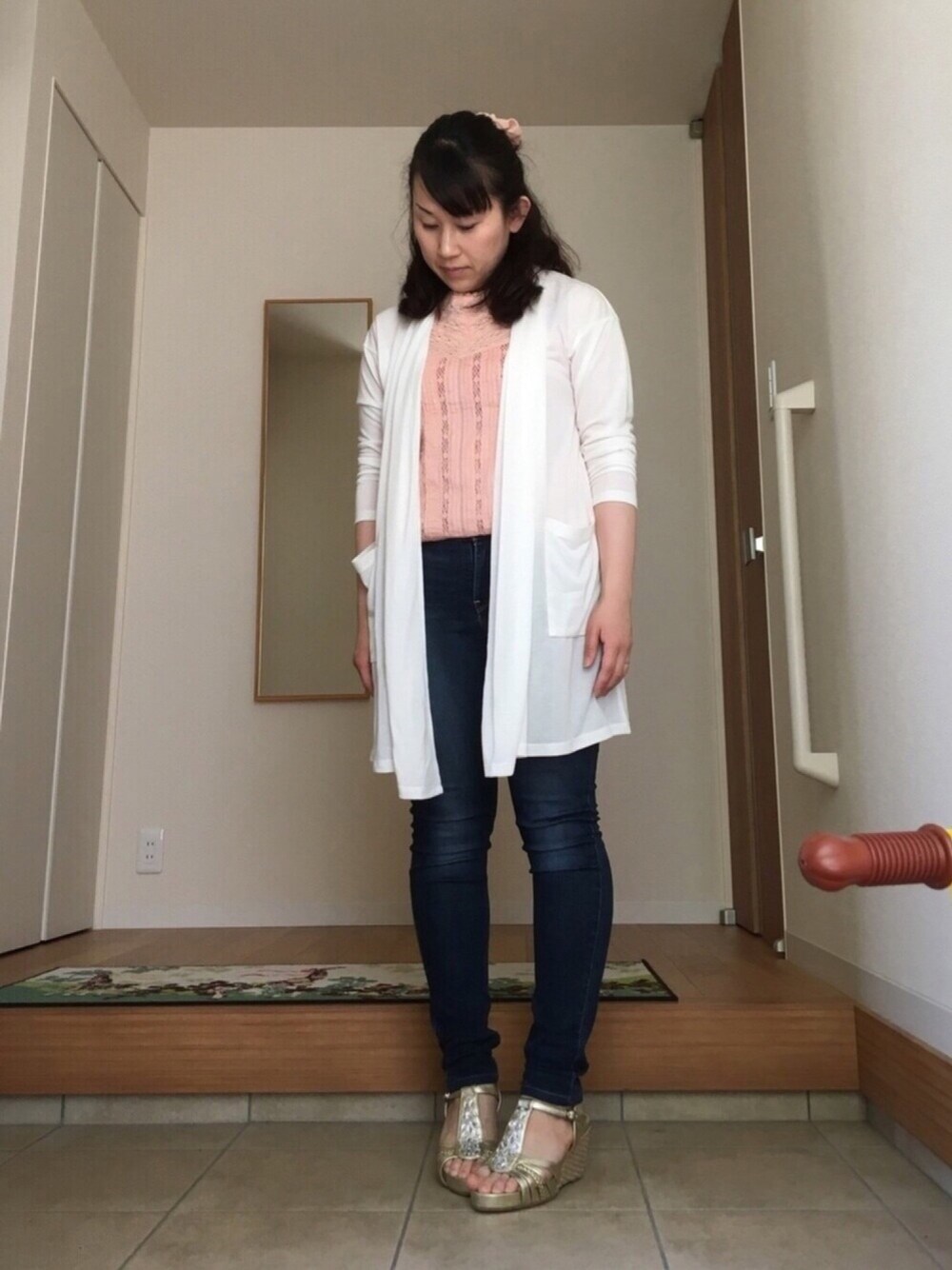 見てくださりありがとうございますᙚᵐⁱᒻᵉ¨̮♡ 久しぶりのÜPになりました😅 見たい、ÜPしたいって気持ちと 行動がなかなか伴ってません😢 コーデはピンクのノースリブラウスに 白のロングカーデとデニム✩ そしてウエッジソールサンダルを 引っ張り出してきました👡✨ 冬の間ずーっと悩まされていた腰痛は 春の訪れとともに解消されて ウソみたいに痛みがなくなりました😆✨ なのでこれからパンプスやヒールサンダル 履けそうです♪ また超マイペース更新になりますが なんとか辞めずに続けていきます!! ↑自分に言い聞かせてます😂笑