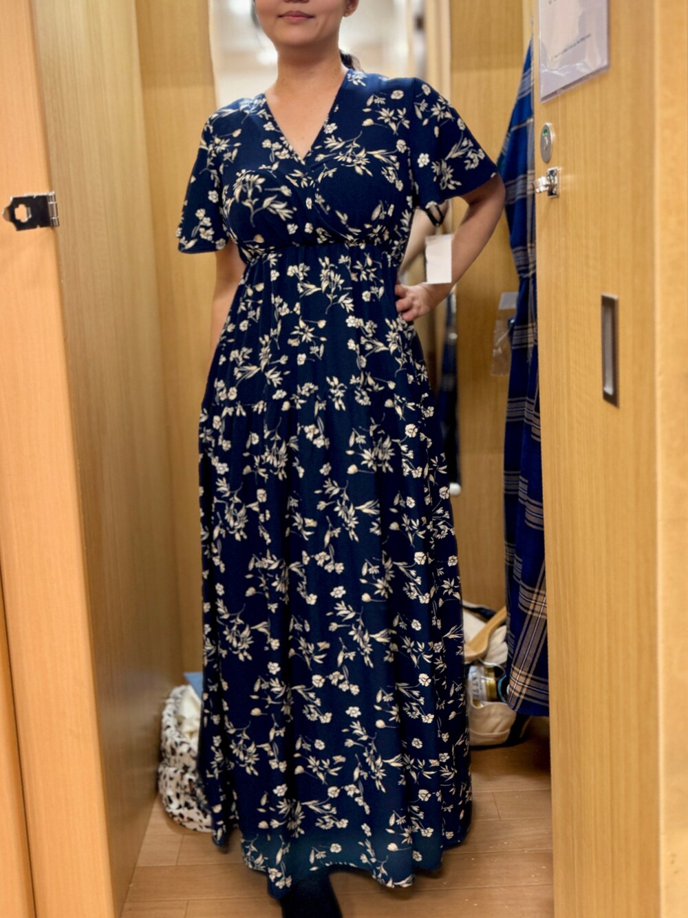 ブルー系のワンピース/ドレス、ホワイト系のTシャツ/カットソーを着用したレディースの夏コーディネートの2枚目の写真