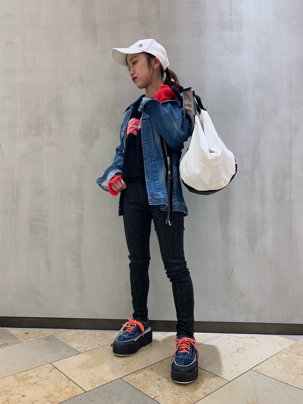 ss19立ち上がりました😆 フロントとバッグにZIPがほどこされウエストをタイトに見せてくれるデニムジャケットです💯 厚底デニムスニーカーもあつい🔥