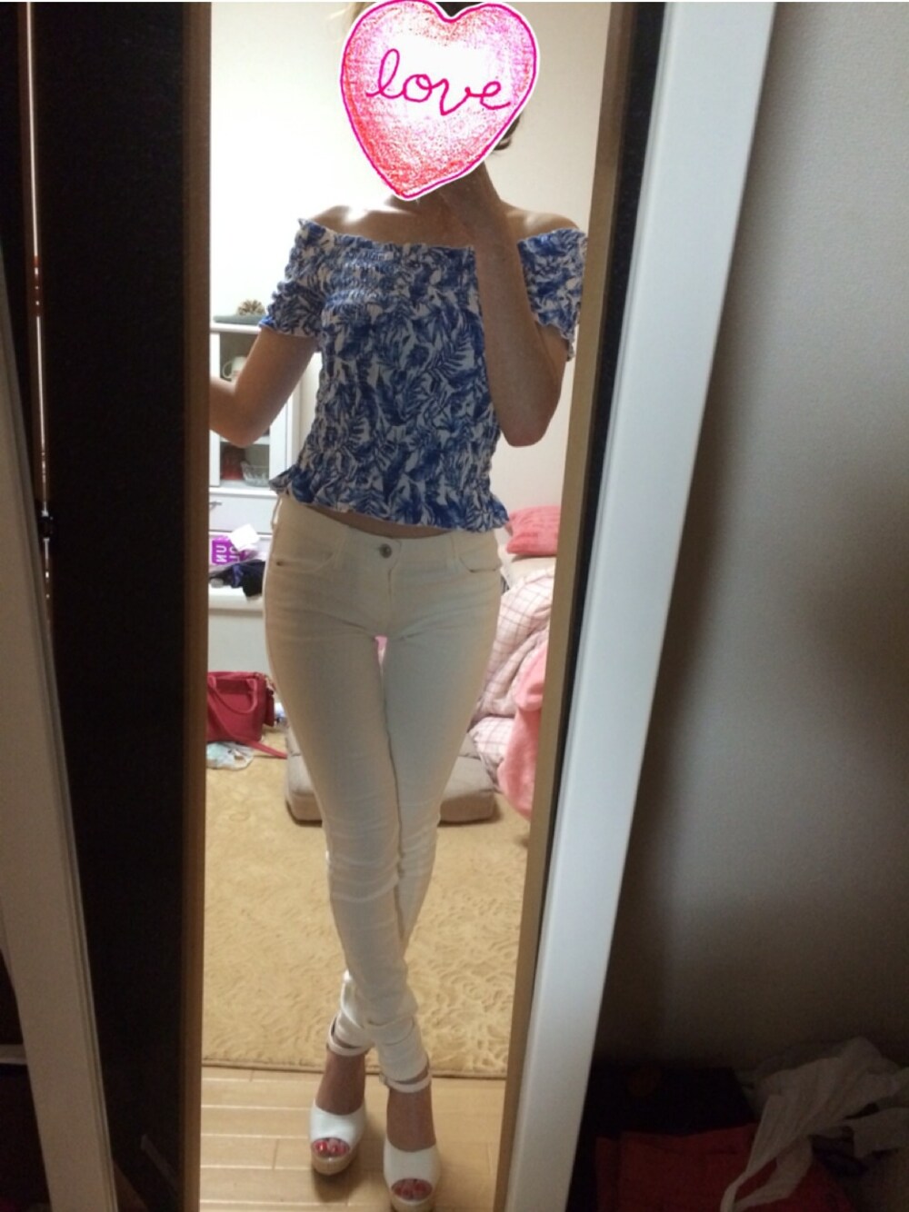 一目惚れのトップス♡ 今日は日本の試合があったから青と白のコーディネート! 白にはよく合いそう! 白のショートパンツに今度合わせてみよう!