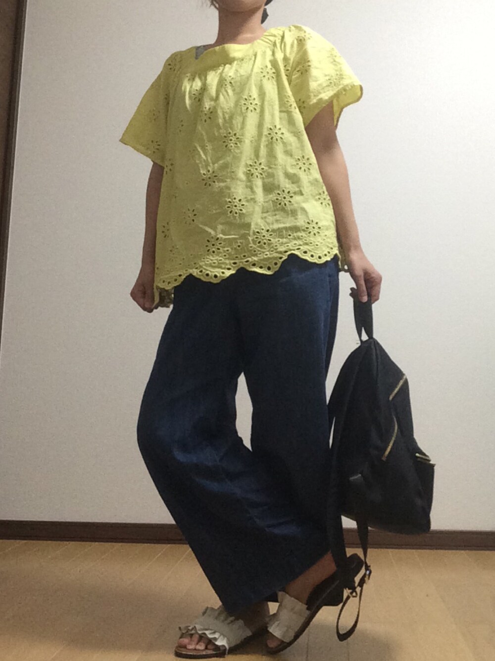 大好きなイエロー❤️ ラフコーデ お家に帰ってきてからの撮影だったため少ししわしわ、、。 すみません