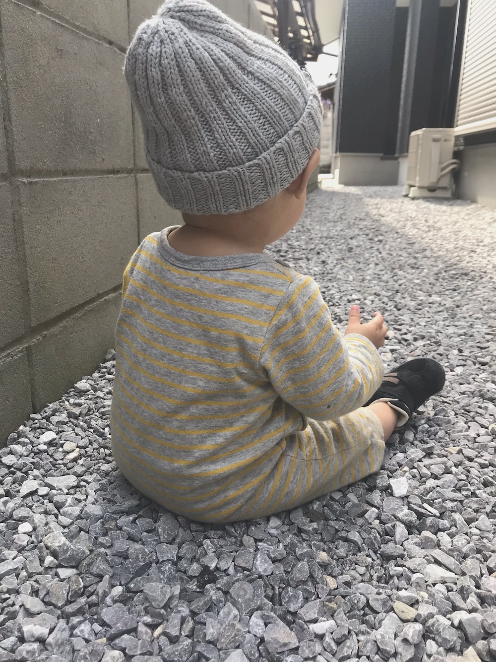 だんだんのロンパース「e-baby/接結eくんパッチボーダーカバーオール」を使ったコーディネート