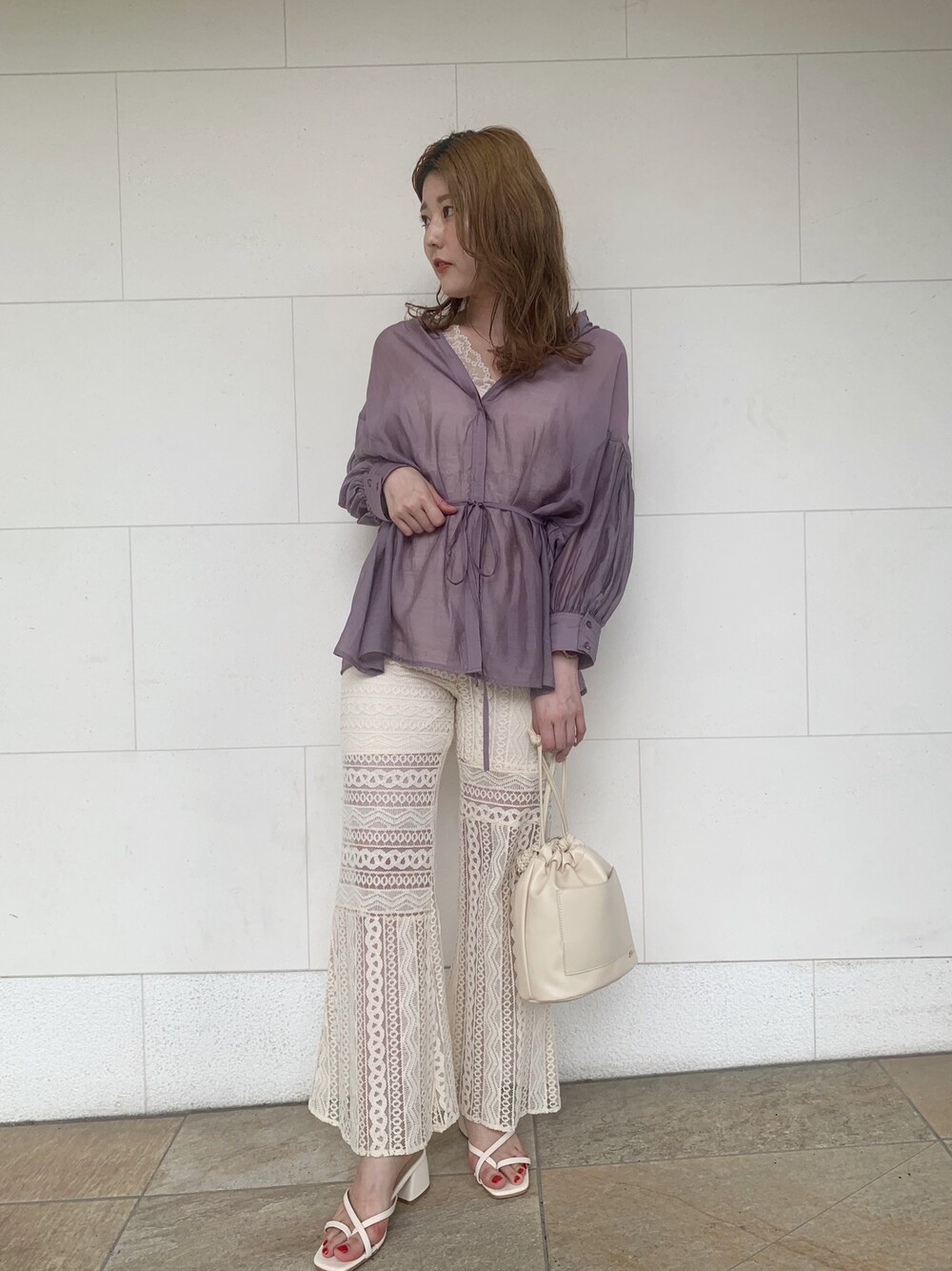 akane akanumaのシャツ/ブラウス「シアー5分袖BIGプリーツ袖ブラウス/透けシャツ」を使ったコーディネート