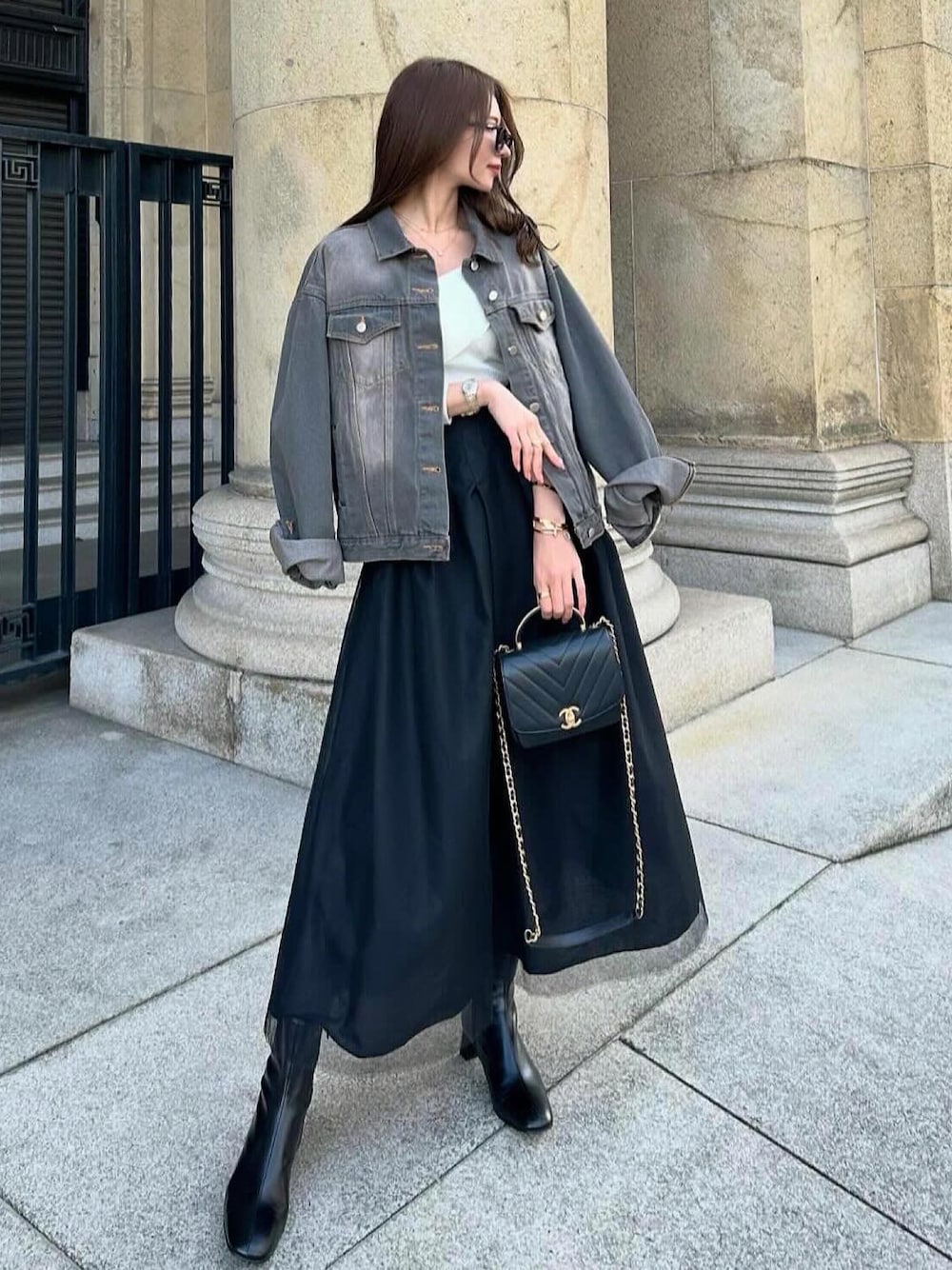 New itemのダブルチュールスカート&デニムジャケット♡ モノトーンコーデ♡ オンラインストアはインスタからご覧いただけます♪ Instagram @117akane Shop @madder_vintage
