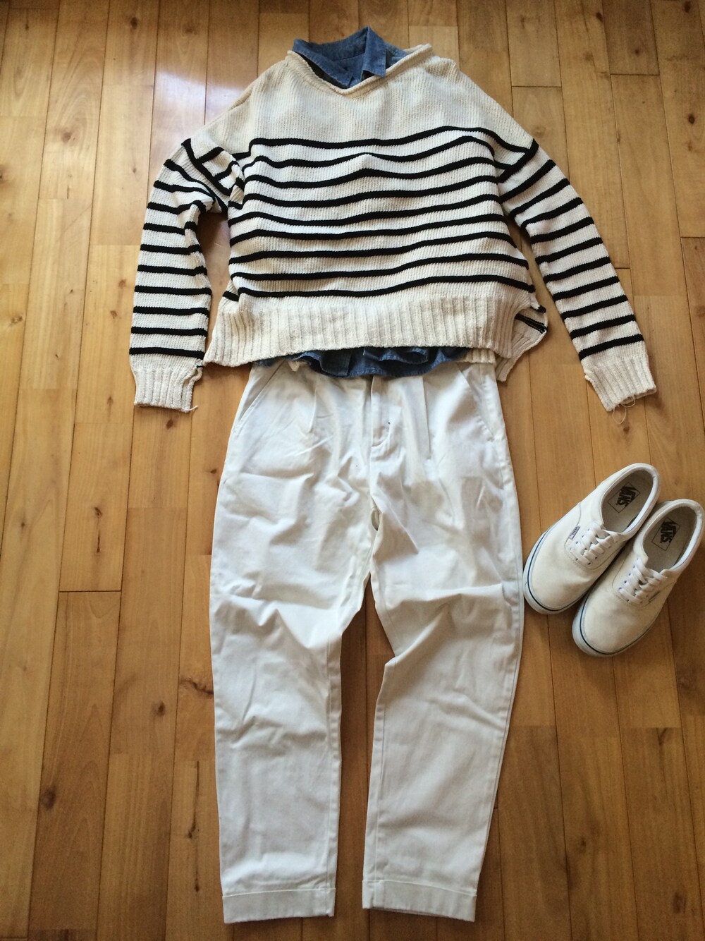 KNIT:ZARA SHIRT:American Eagle WEARでフォローしてる ユーザーさんが着てて 思わず買いに行ったニット♡ 春はやっぱり 白が着たくなるね (似合わないけど)