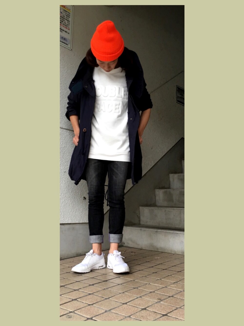 Adam et Rope'のモッズコート 春仕様でファーはずしたら全然別物のアウターみたいになりました❤️ 頭ボサボサ隠しにニットキャップ愛用してましたがそろそろ卒業しないと…です💦