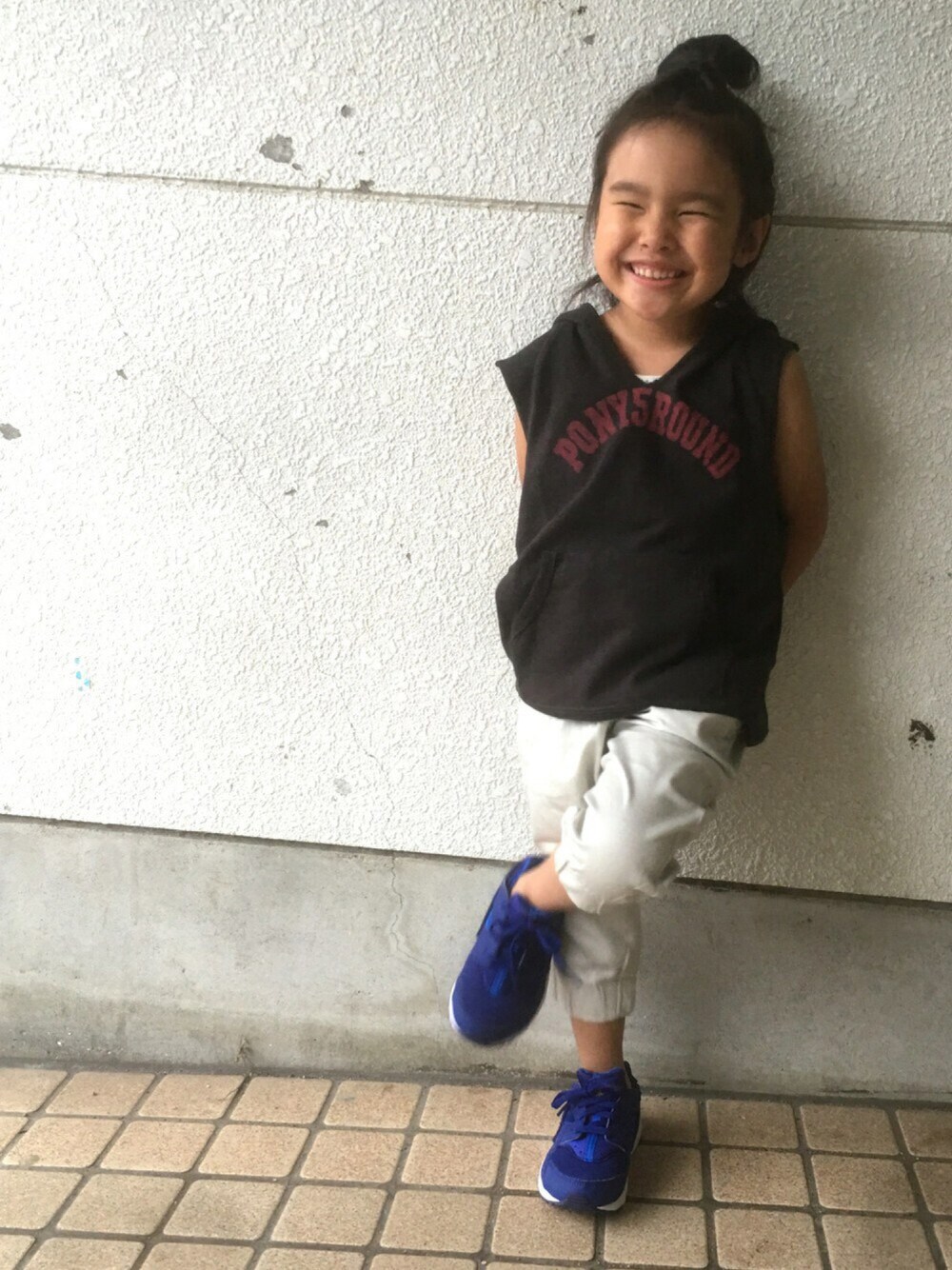 初夏の外遊び仕様☺︎ ノースリーブで涼しそう♡ 最近◯◯ごっこがブームの娘。 だいたい母も参加させられますが、今日は意味不明、 マダムの自慢話ごっこでした💦