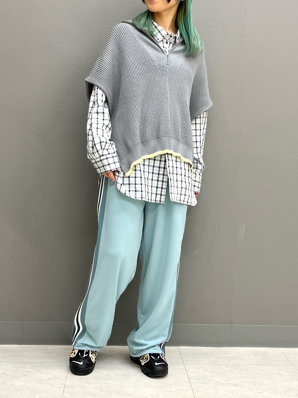 ゆるっとラフなレイヤードコーデ! 万能なチェックシャツはインナーにするとコーデのアクセントにも☺︎