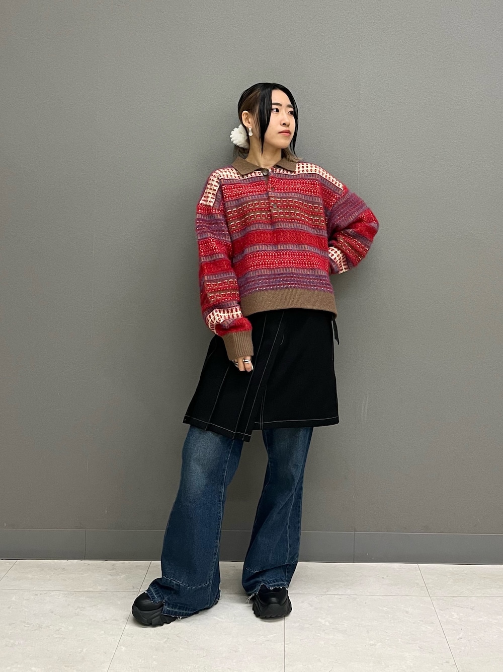 トレンドの赤ニット🧶 ショート丈でスタイルアップ✌️