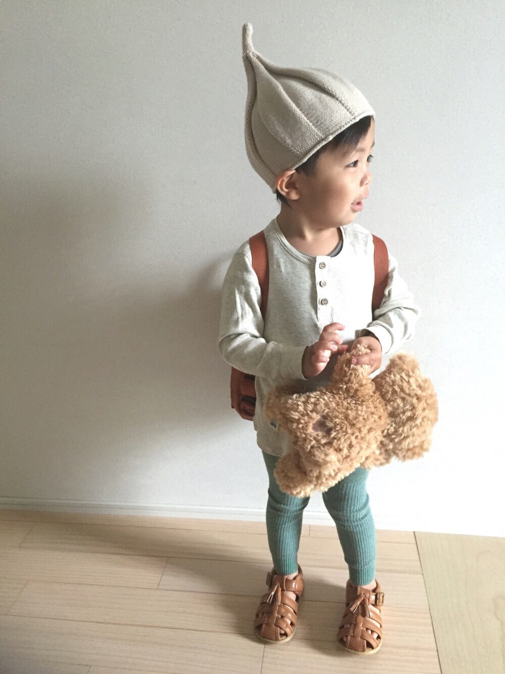なんだか情けない顔で失礼します♡笑 今日もリュックでお出かけ♡ 小人帽色違いも手に入れた♡わーい(=´∀`)人(´∀`=)