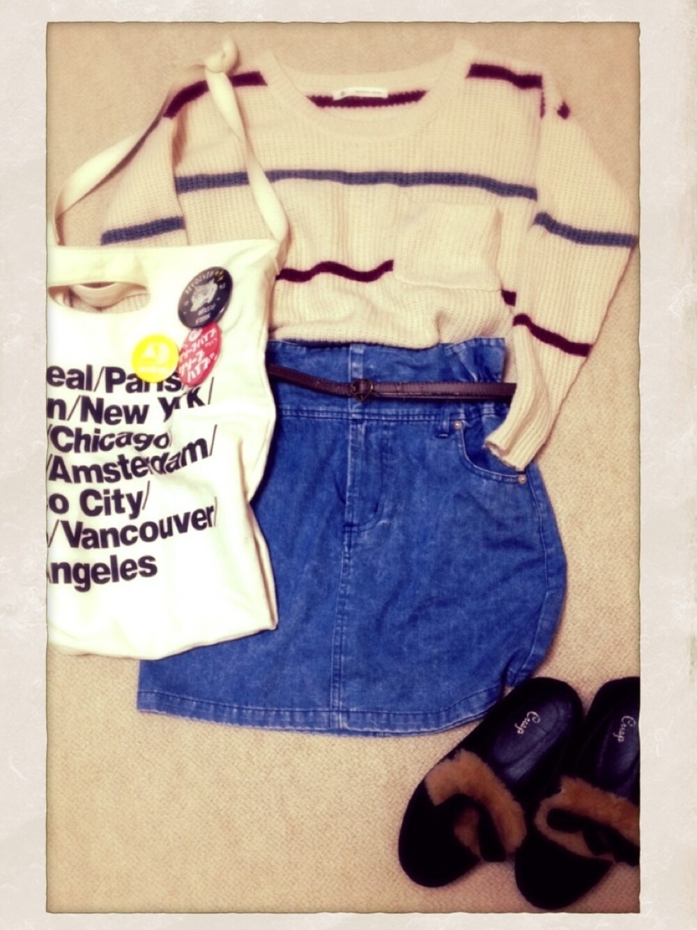 knit # MAJESTICLEGON skirt # Crisp shoes # Crisp Bag # American Apparel 缶バッジは クリープ androp !!