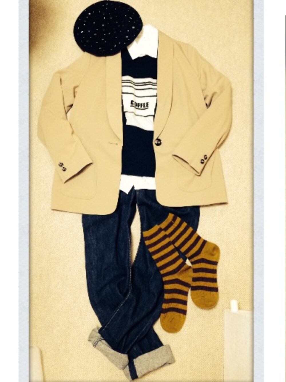 jacket : RETROGIRL knit : I am I shirt : UNIQLO pants : used socks : tutuanna hat : rivet and surge
