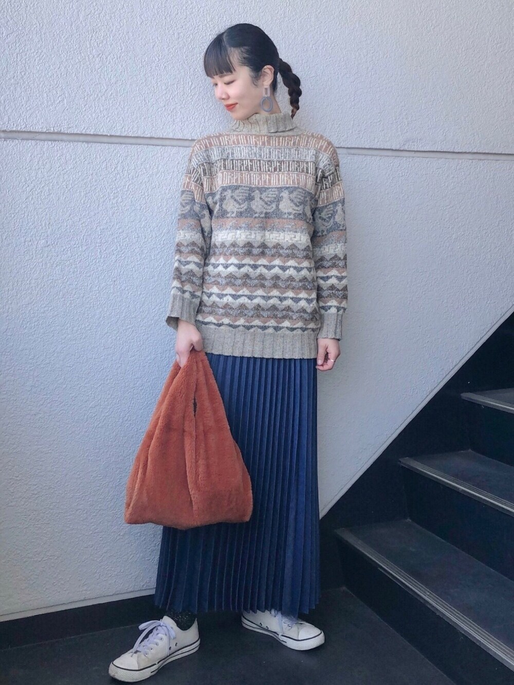 通院コーデ🏥 昨日は朝からかかりつけの病院へ🐾 今週は急遽、仕事がお休みになりました~🤗 よく着てるけどWEARに登場してなかった、数年前おじいちゃん家に行った時に寒いだろ?ってくれたニット☺️🧶 柄が可愛くてお気に入り🧡🧡🧡 これはなんの柄なんだろ🦉?