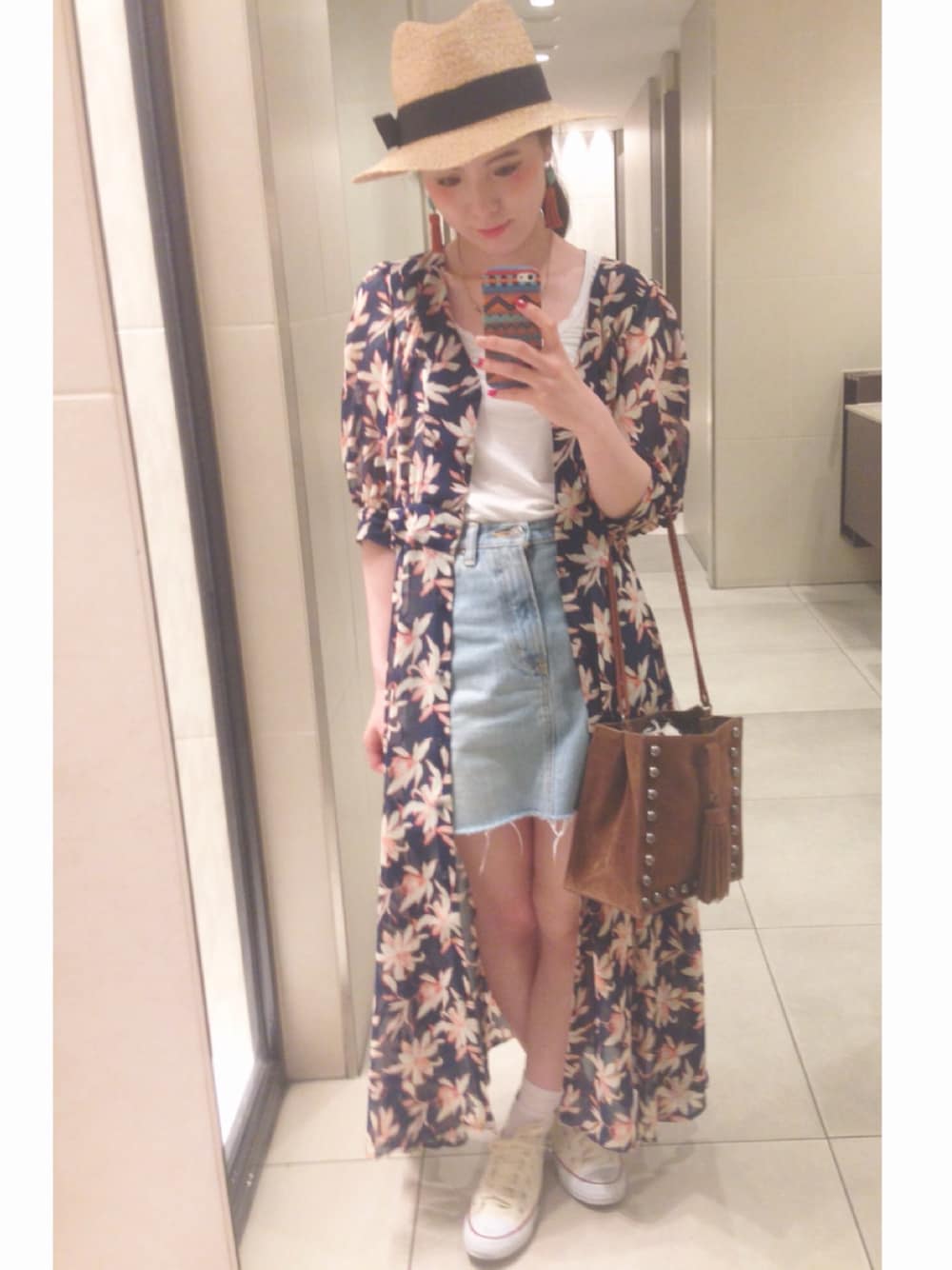 ガウン SLY インナー SLY スカート SLY ハット MOUSSY スニーカー Converse このガウンはボタンをしめたらワンピースにもなる優れものです❤