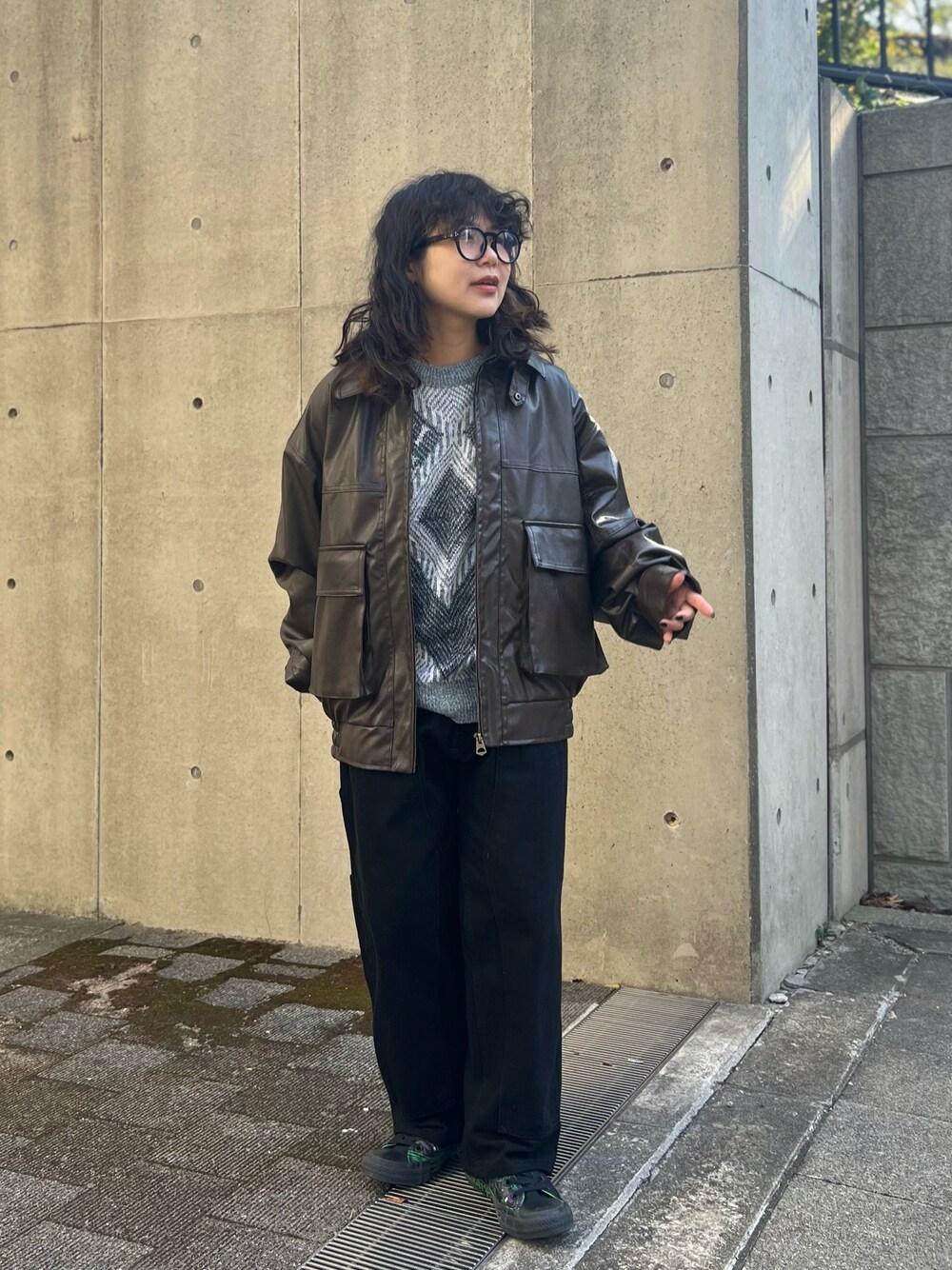 ぽむまるのその他アウター「【M,Lサイズ展開!ユニセックス着用可能】フェイクレザー A-2ジャケット」を使ったコーディネート