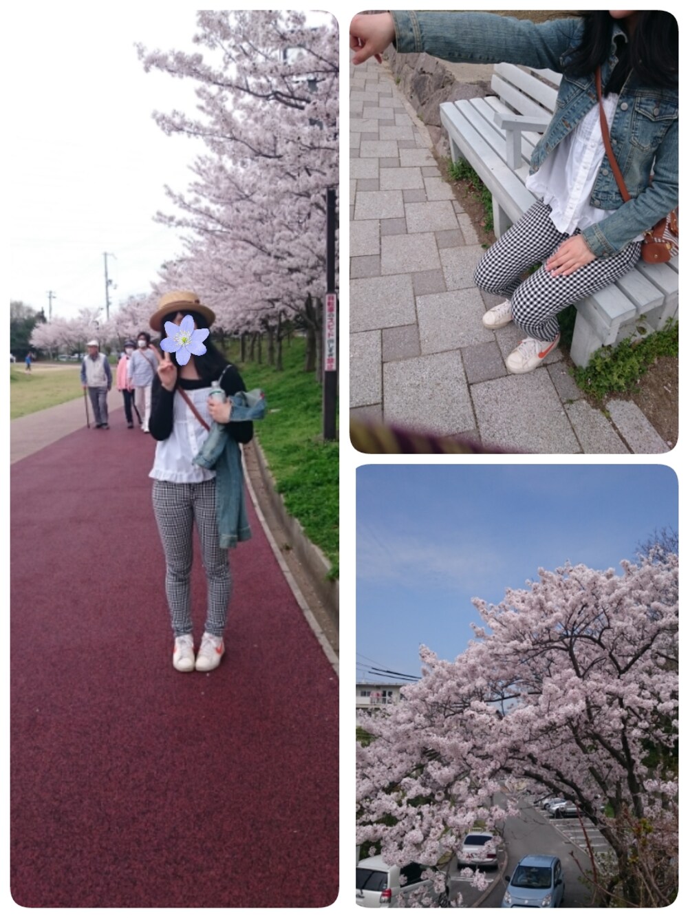 今日は天気が良かったので、お花見をしに行きました🌸 動きやすい格好でなおかつお洒落にしたかったので、足元はNIKEのスニーカー、脱ぎ着しやすいようにデニムジャケットを羽織りました。 でも、お花見しに行くとギンガムチェックの服を着ている方がたくさんいたので、少し恥ずかしかったです😅