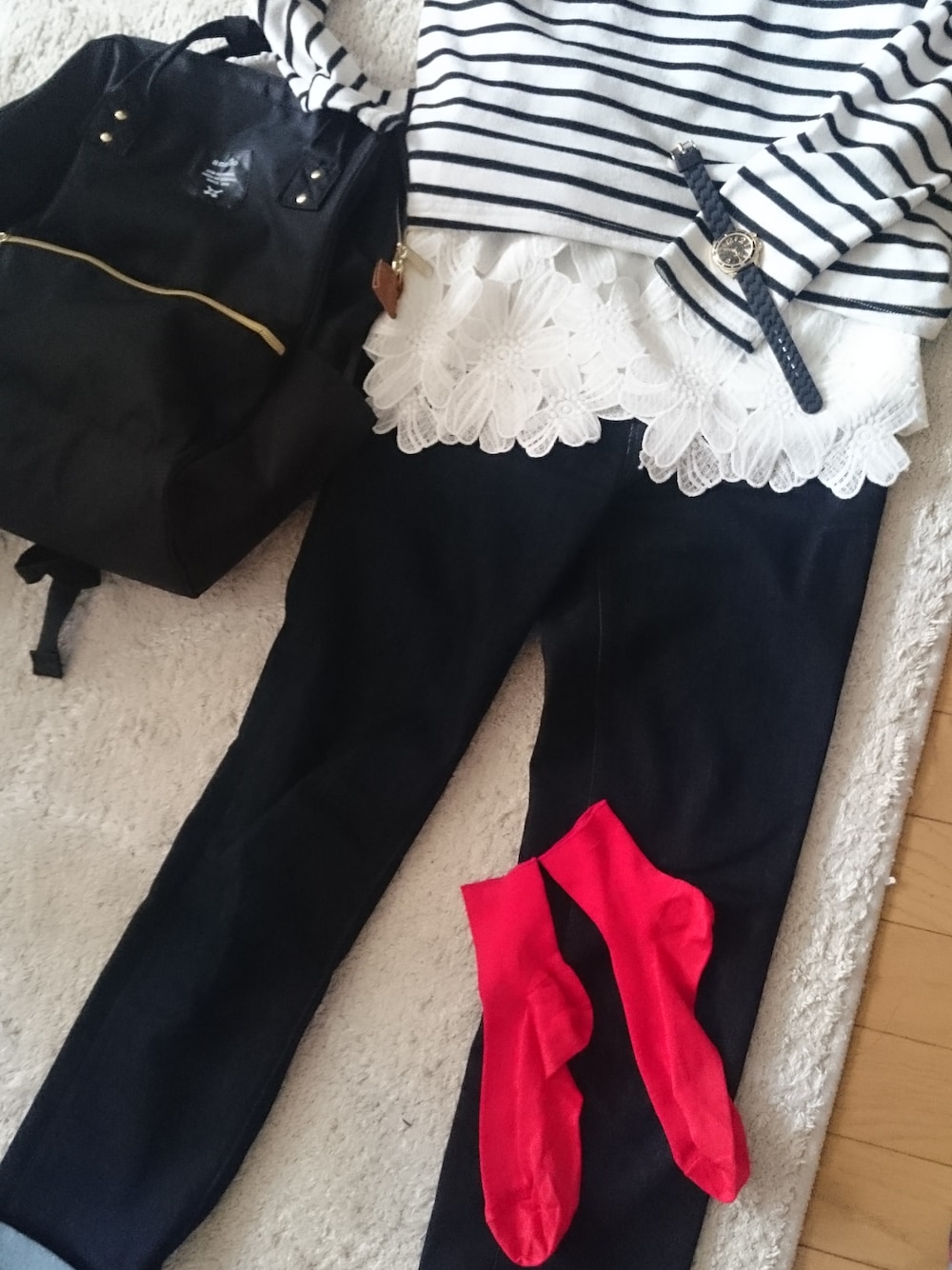 リュックとTシャツはFLASH REPORT で二点で20%offで買いました! レース付きのTシャツは700円台だったかな(笑) この上にトレンチコートを着ようと思います☀