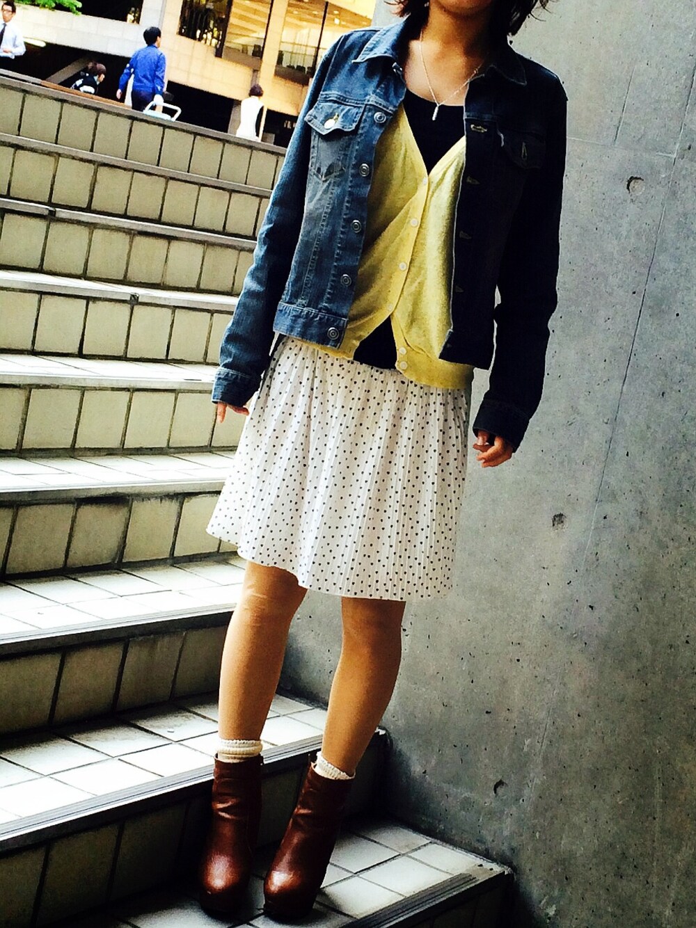 今日は暖かかったので春らしい色を取り入れました。 Gジャンの下に着ているパステルカラーのカーディガンがお気に入りです(^○^) Gジャン UNIQLO カーディガン earth music&ecology スカート ZARA