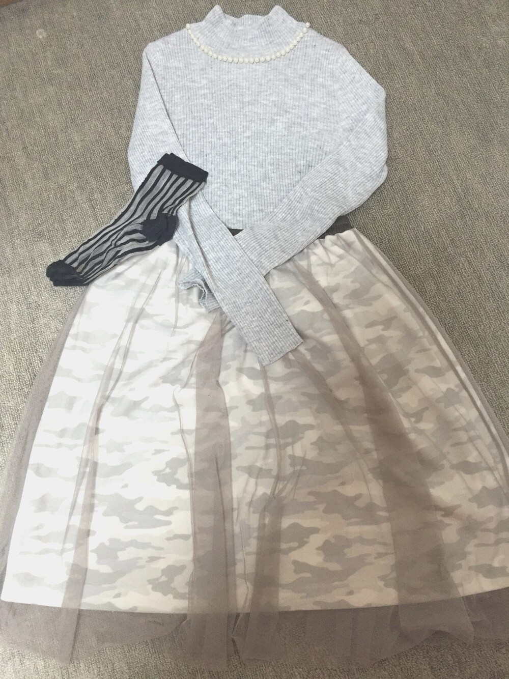 いつもいいねありがとうございます♡ 今日もバイトです〜! ほんわかした色合いだけど、靴下をブラックにして引き締めてみました☺️